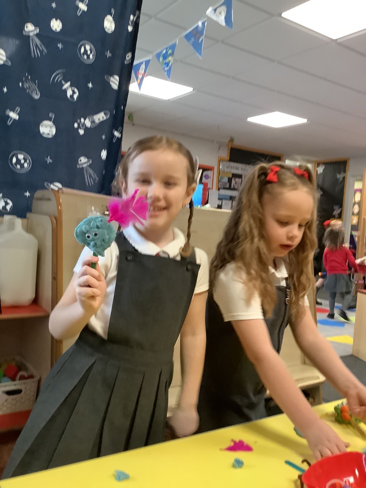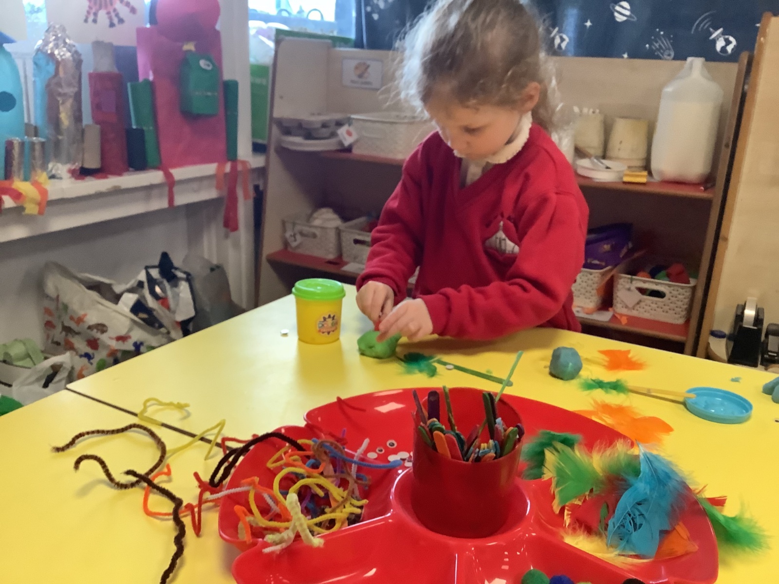 After all the teachers came as Aliens in Underpants for World Book Day, we thought there might be aliens somewhere in space! We are really enthusiastic about this idea and have got really involved in lots of alien play, activities, and even designing our own aliens to make!
