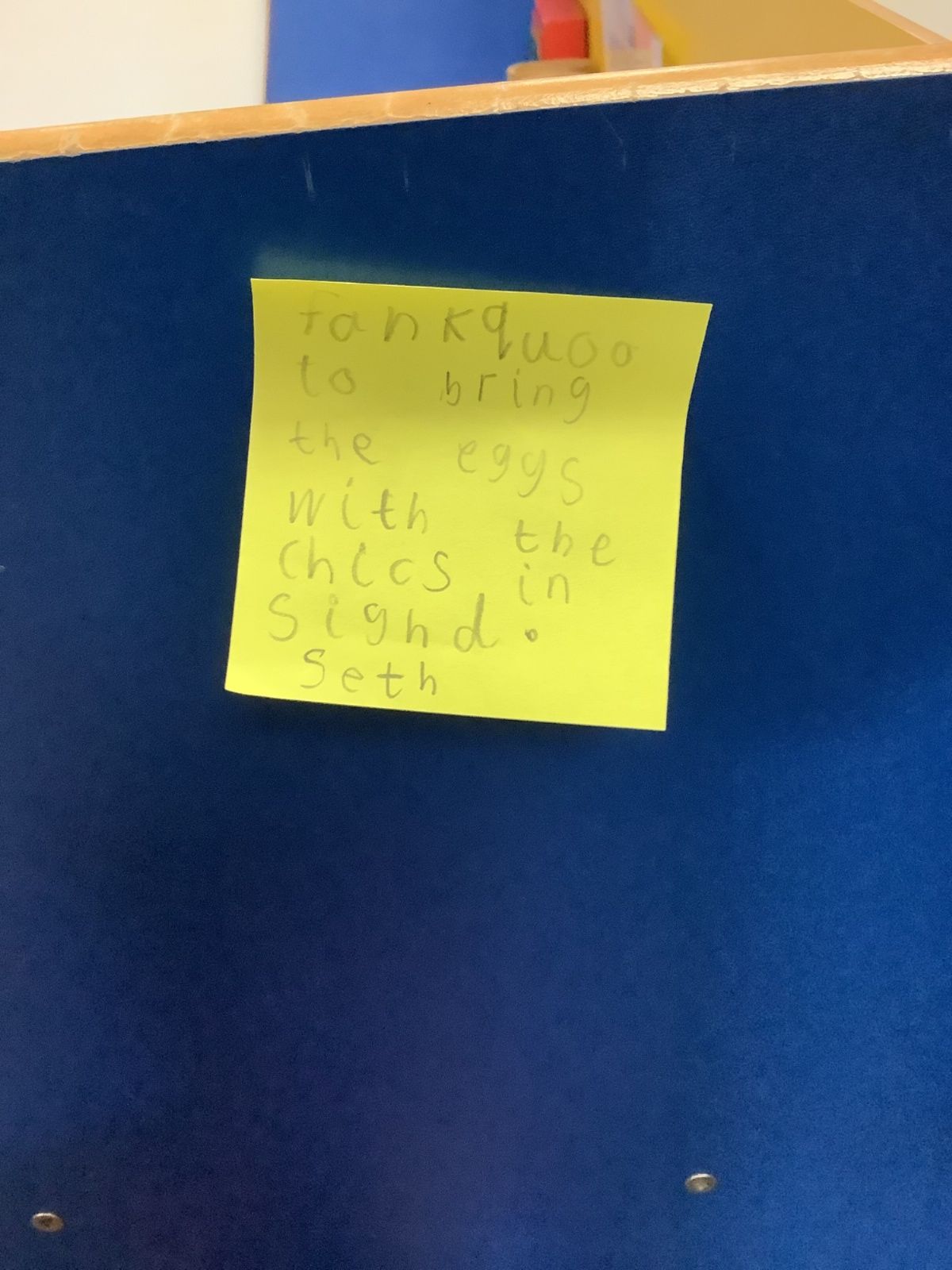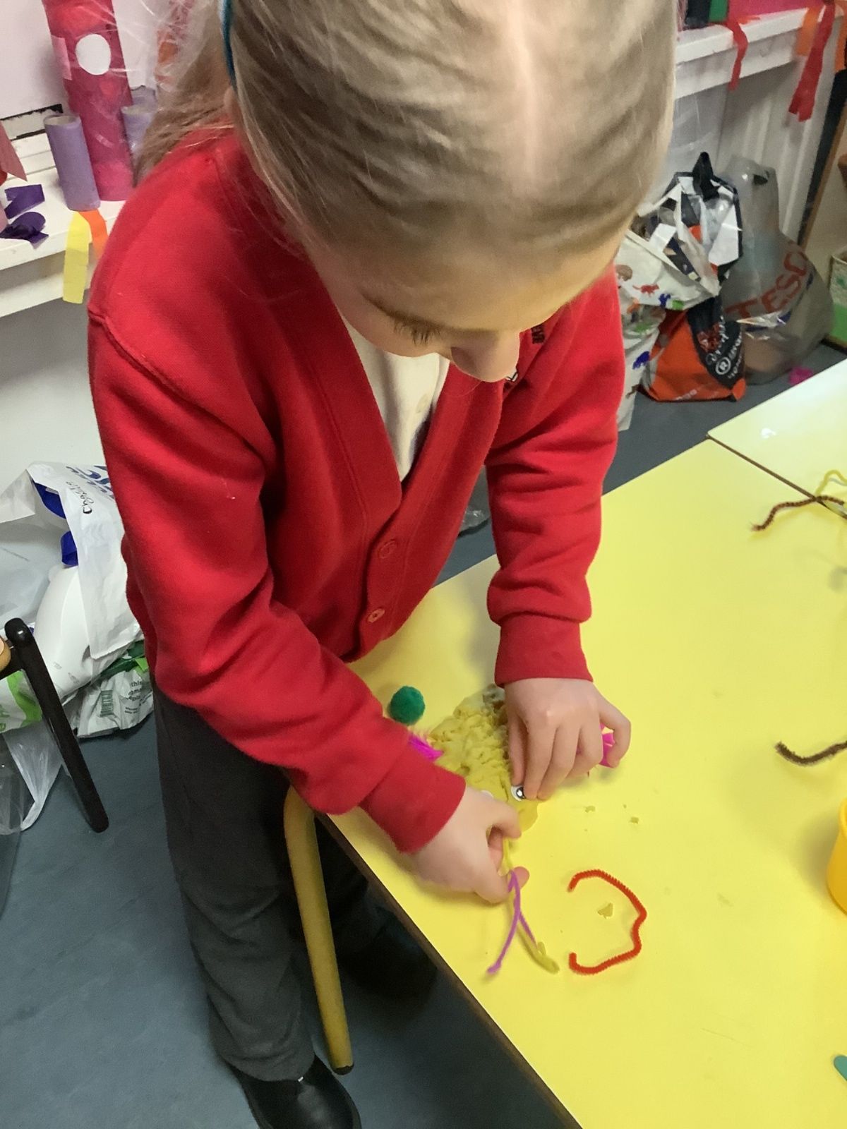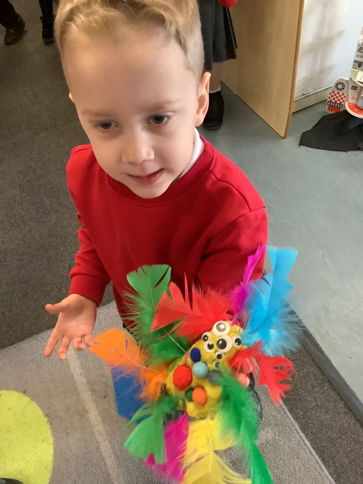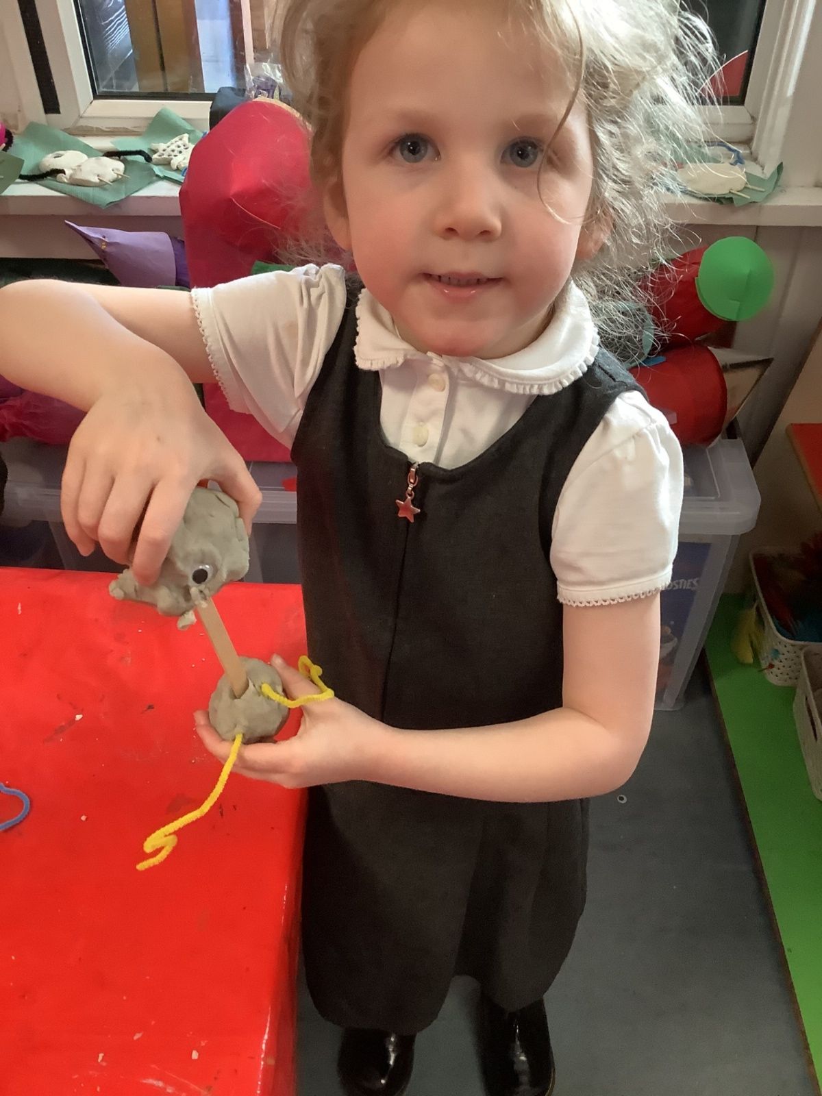 The aliens visited from the moon, and stole all of our spare pants! They did leave us some Easter treats. (Eggs with chicks in) and lots of colourful paper.