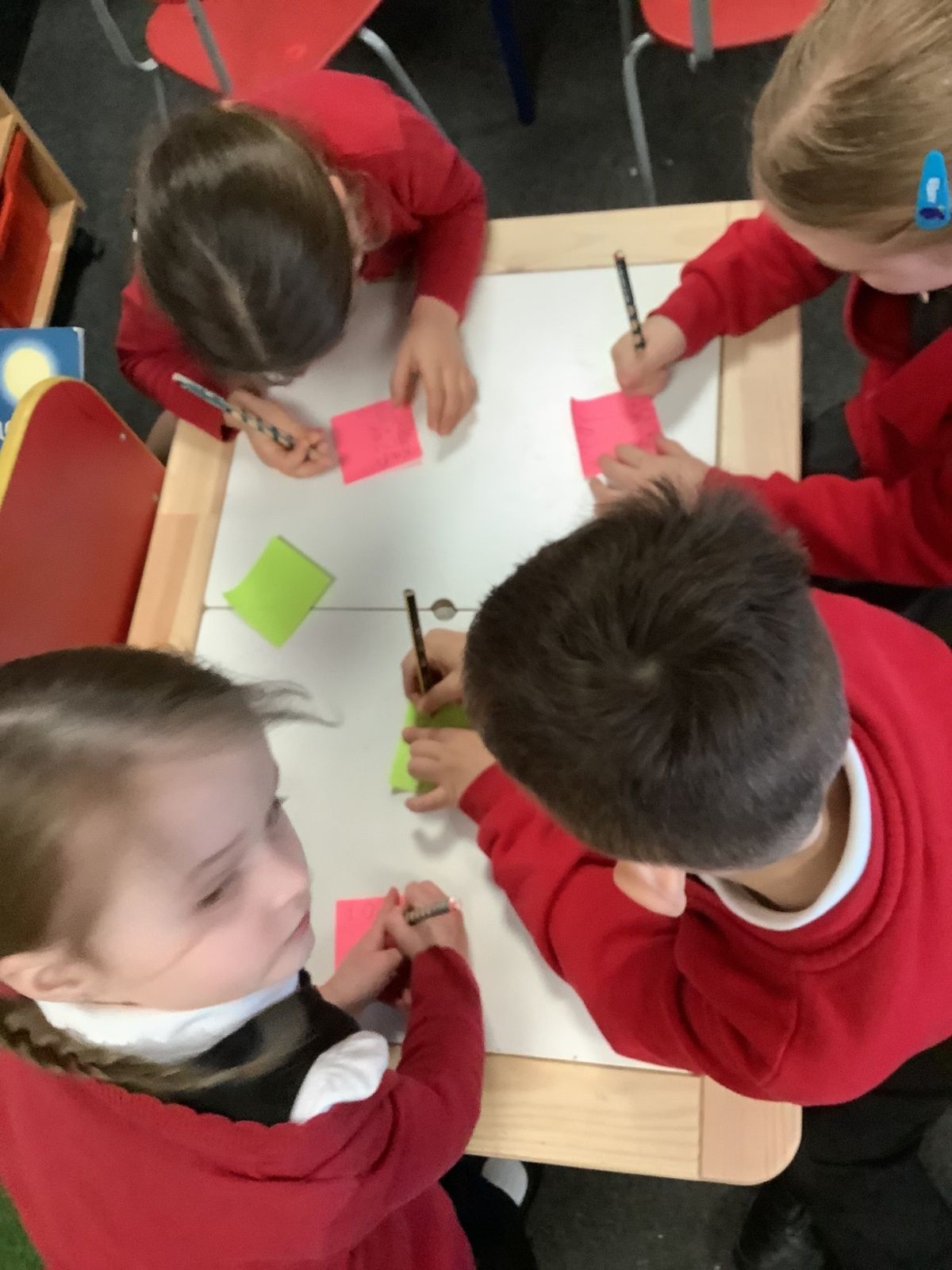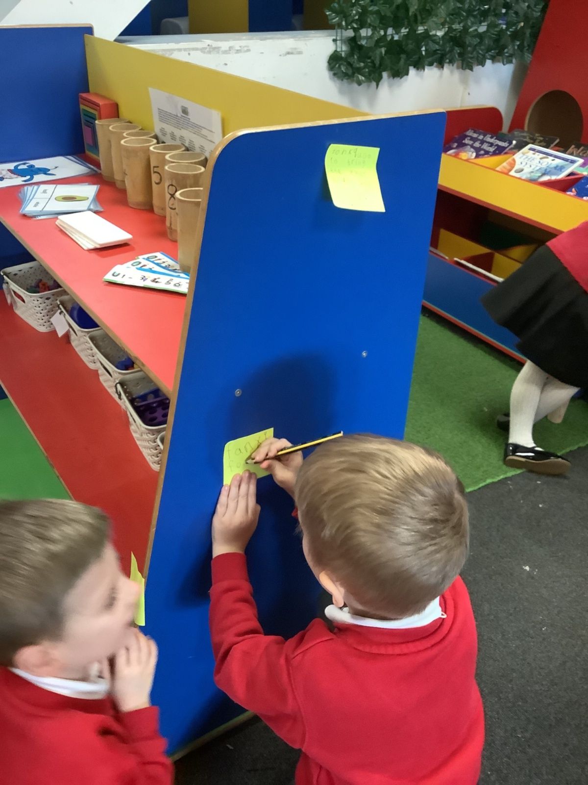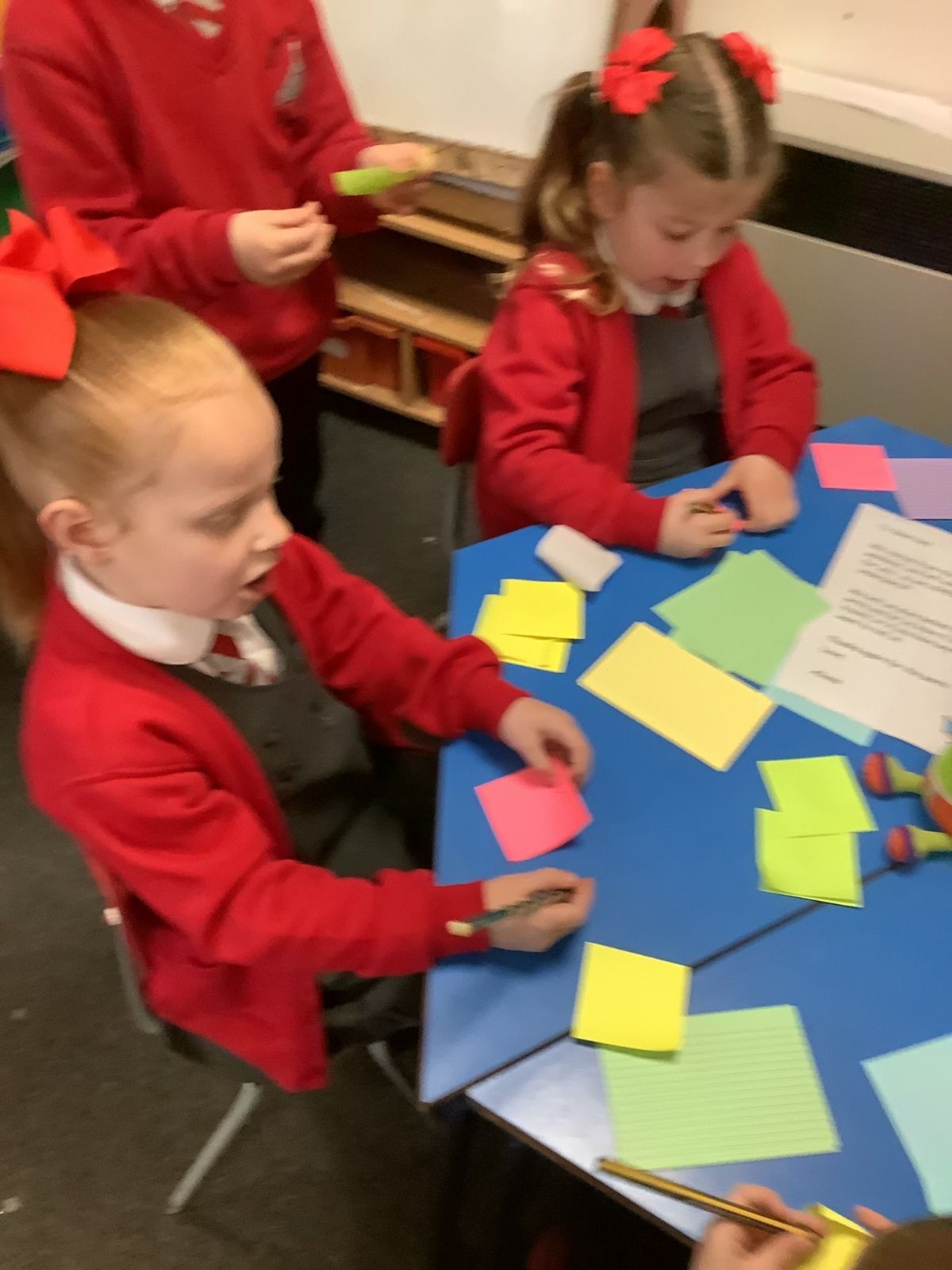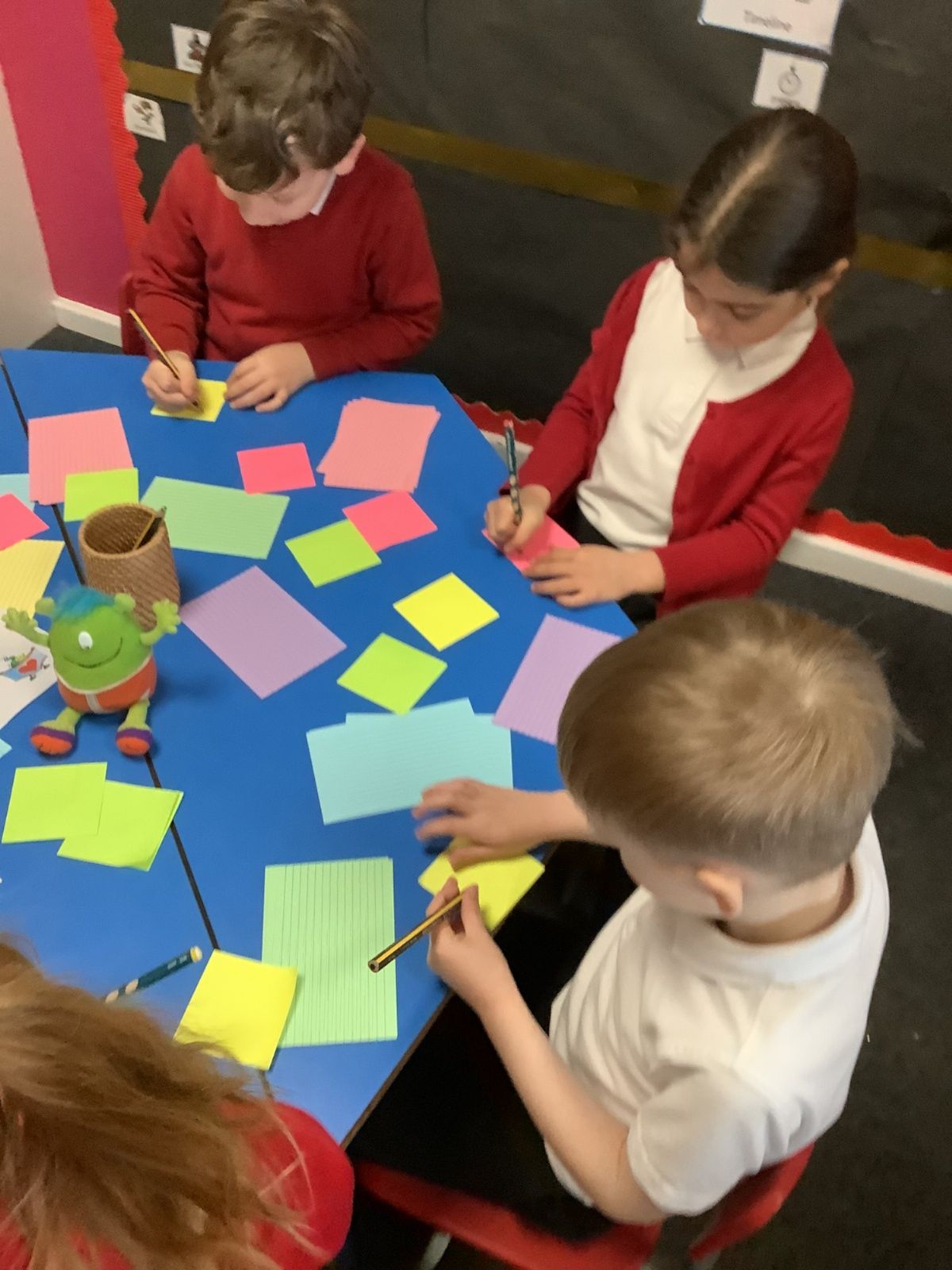 The aliens visited from the moon, and stole all of our spare pants! They did leave us some Easter treats. (Eggs with chicks in) and lots of colourful paper.