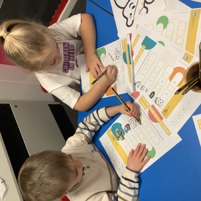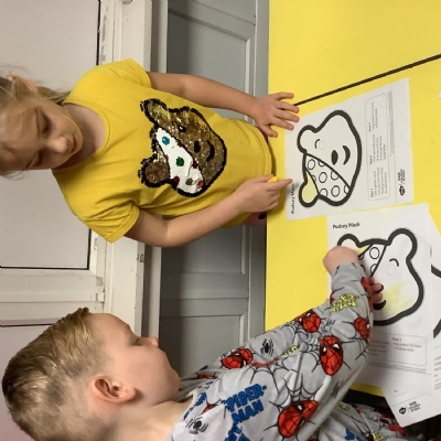 We made Pudsey masks, Pudsey out of play dough, put spots on Pudsey, wrote words with Pudsey, and even Pudsey CVC bingo to practice our word reading!