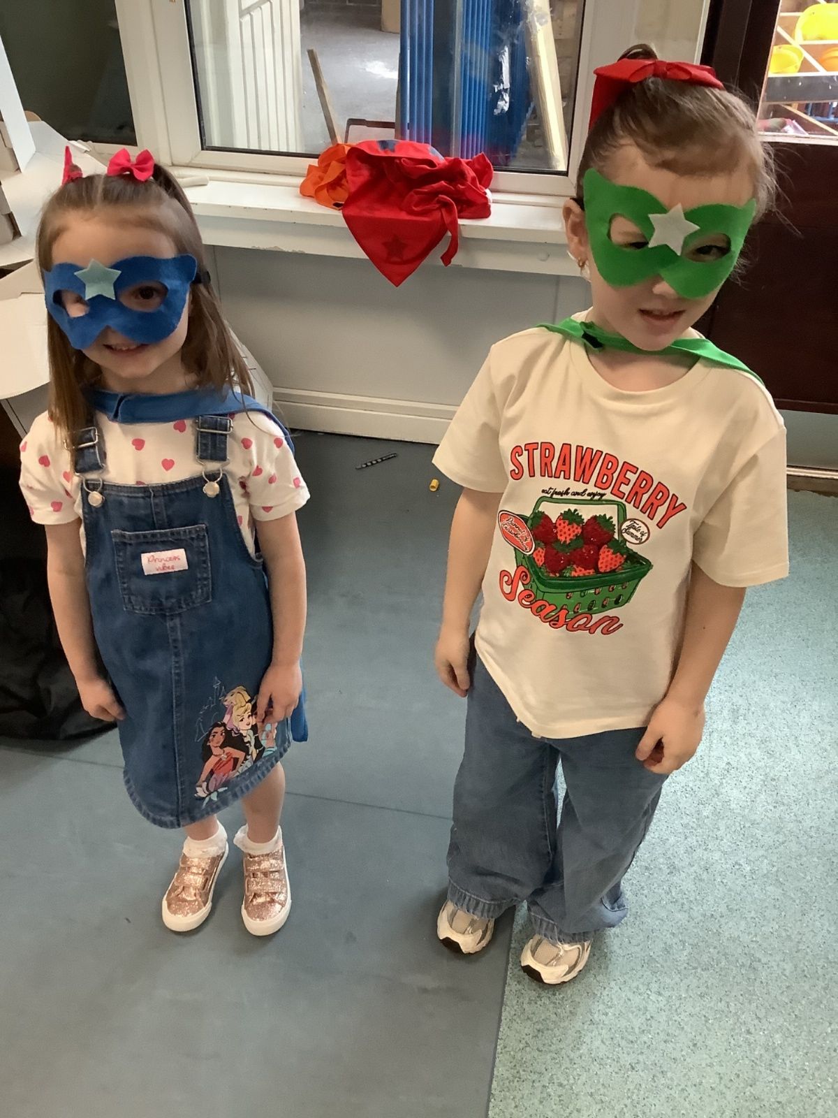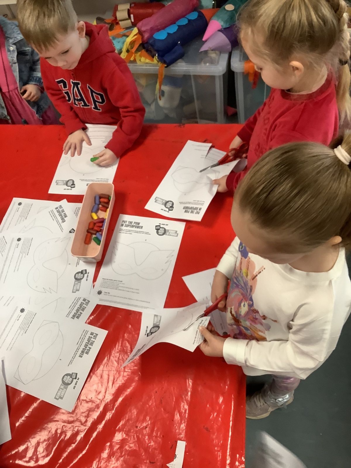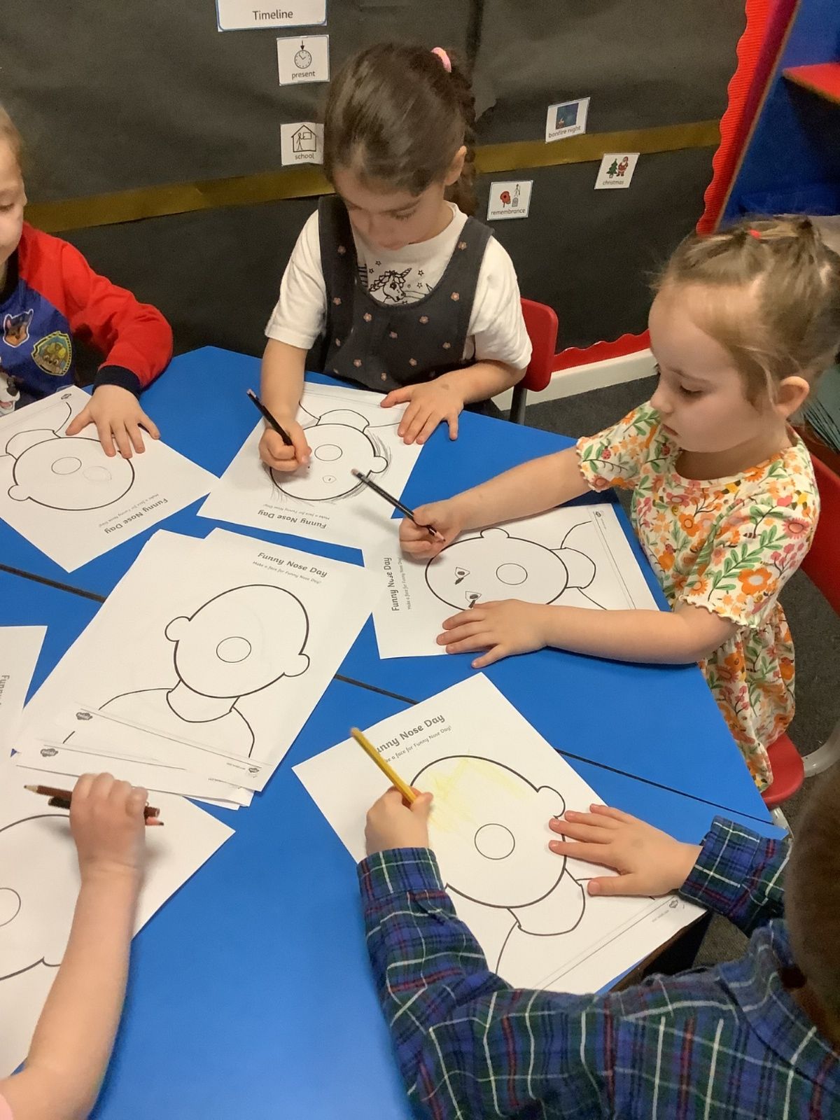 We drew ourselves with a red nose design, counted and coloured emojis, and made superhero masks to wear, which also linked to our drawing club of Super Ted this week so we loved this activity!