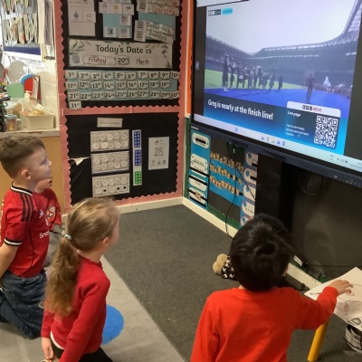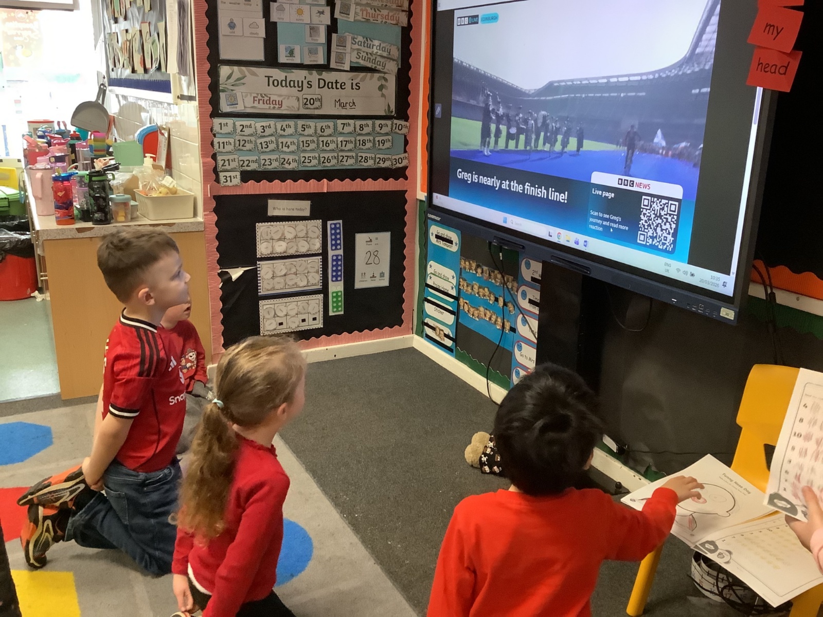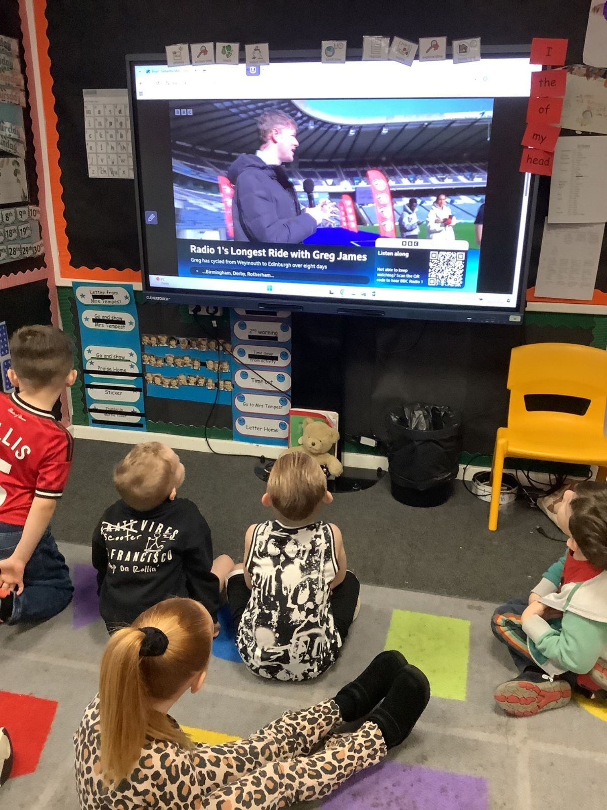 We watched Greg James finish his longest ride and go over the finish line, and we're very impressed with how much he raised by challenging himself - and that there was a red nose at the finish line!!