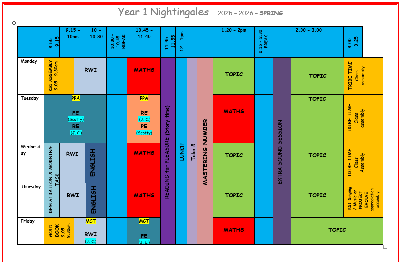 Year 1 Nightingales SPRING Timetable