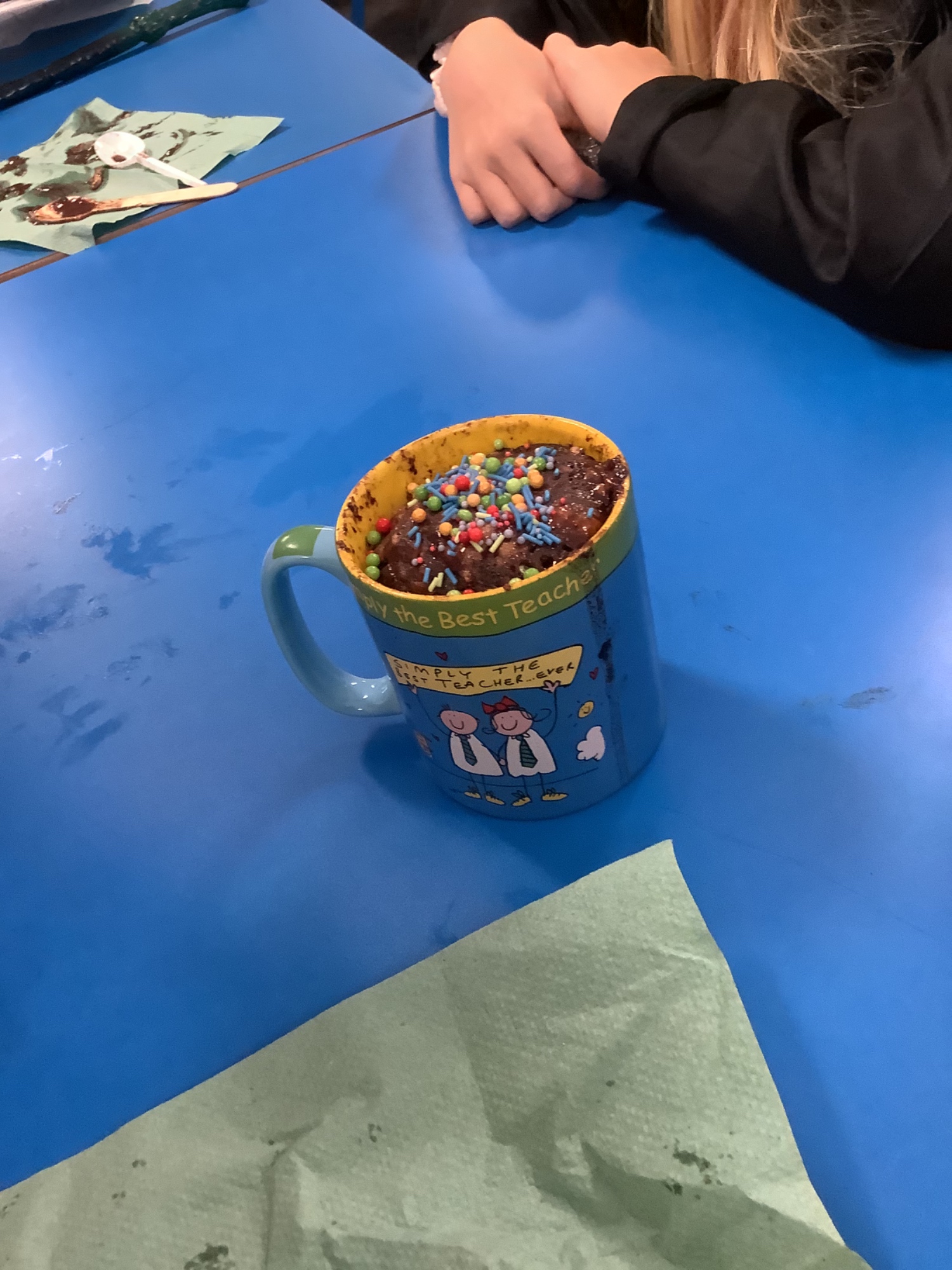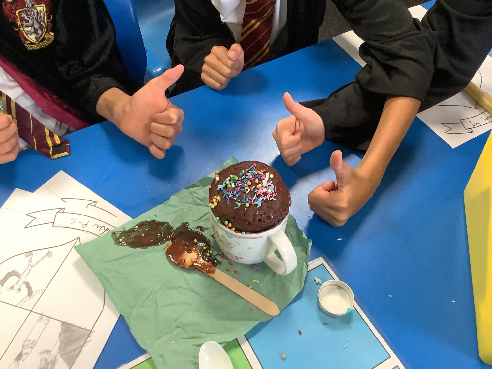 We made irreversible chemical reactions in the form of mug cakes and then we made ice cream!