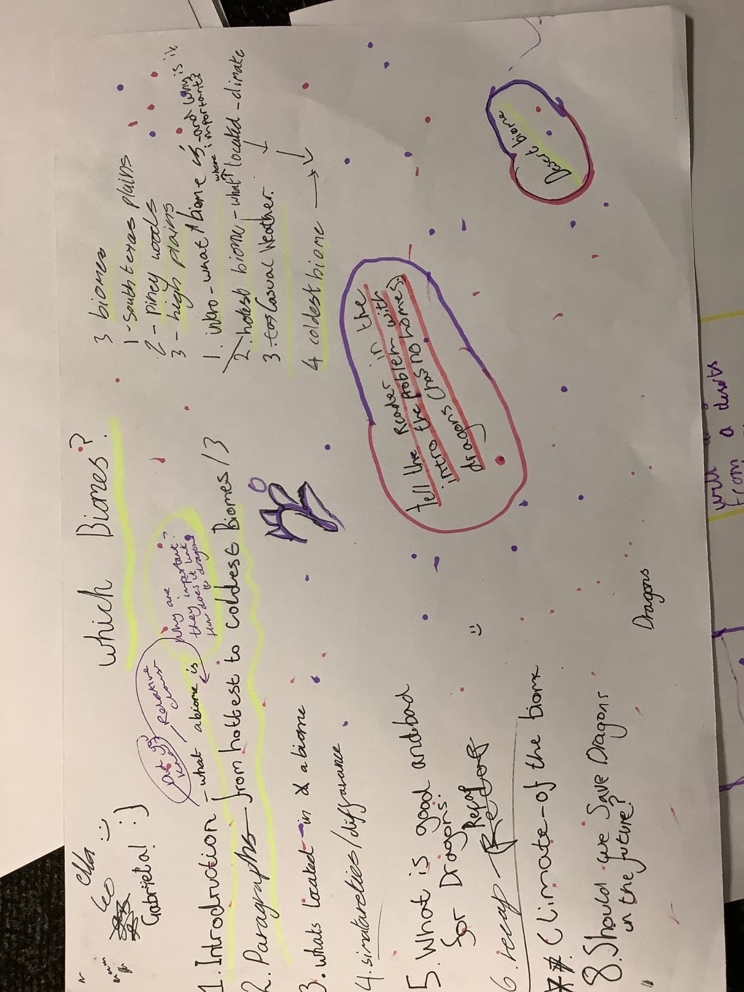 Working together to plan the structure of a non-chronological report.