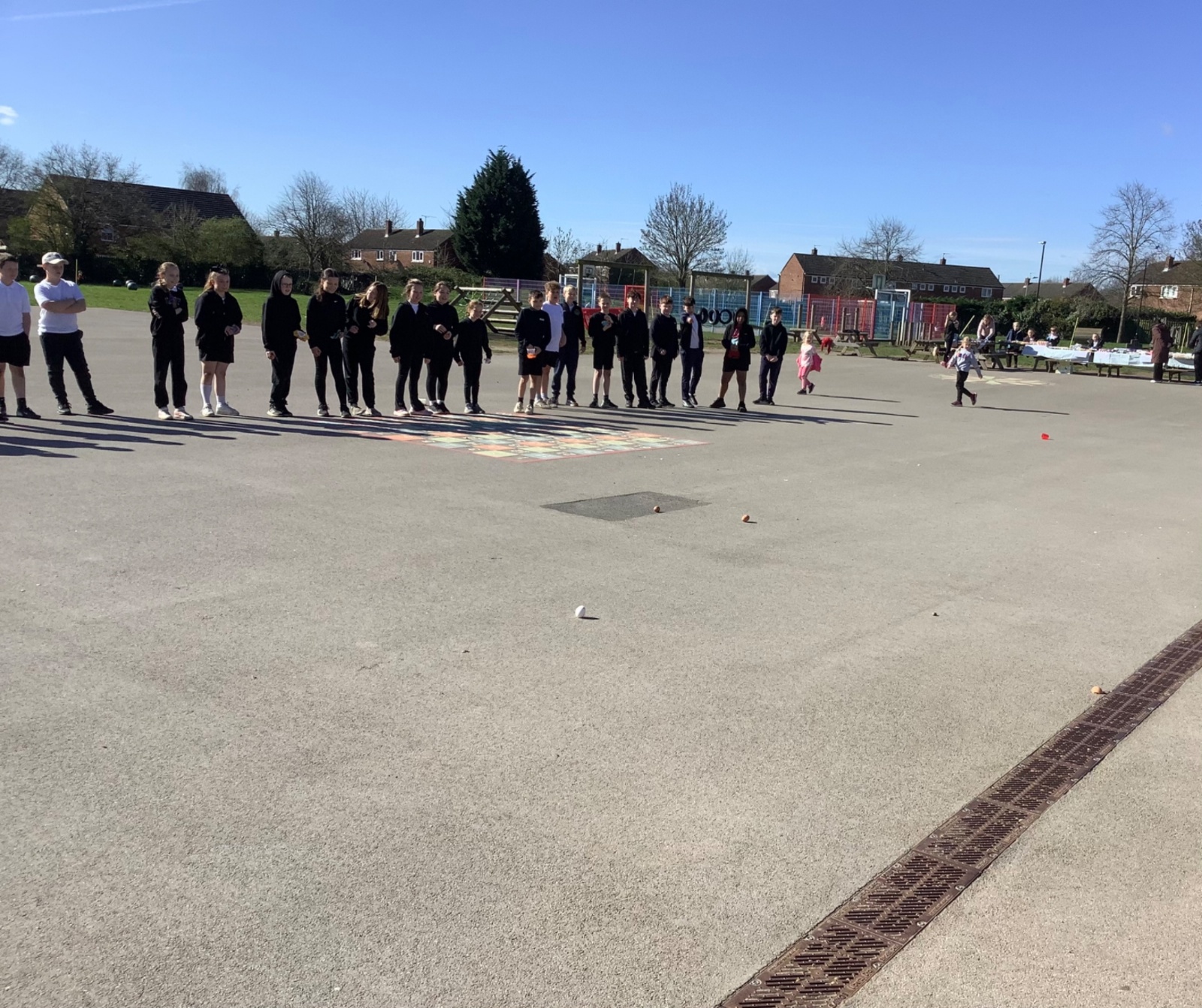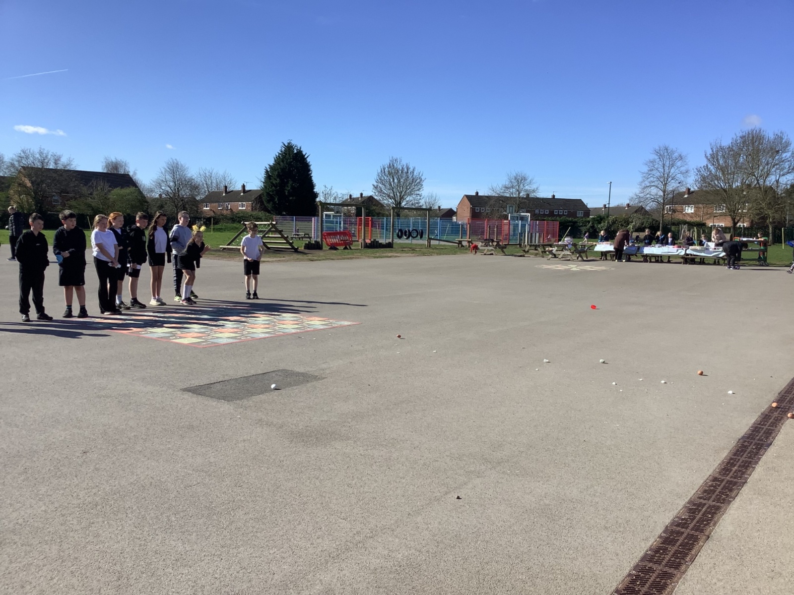 As ever, we had the traditional egg rolling competition. It was great to see so many year 6 children taking part. In the end, Emily took the crown but well done to all.
