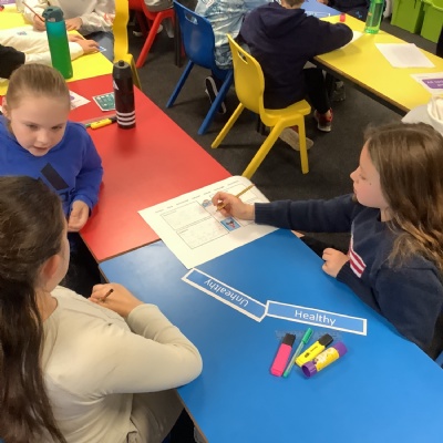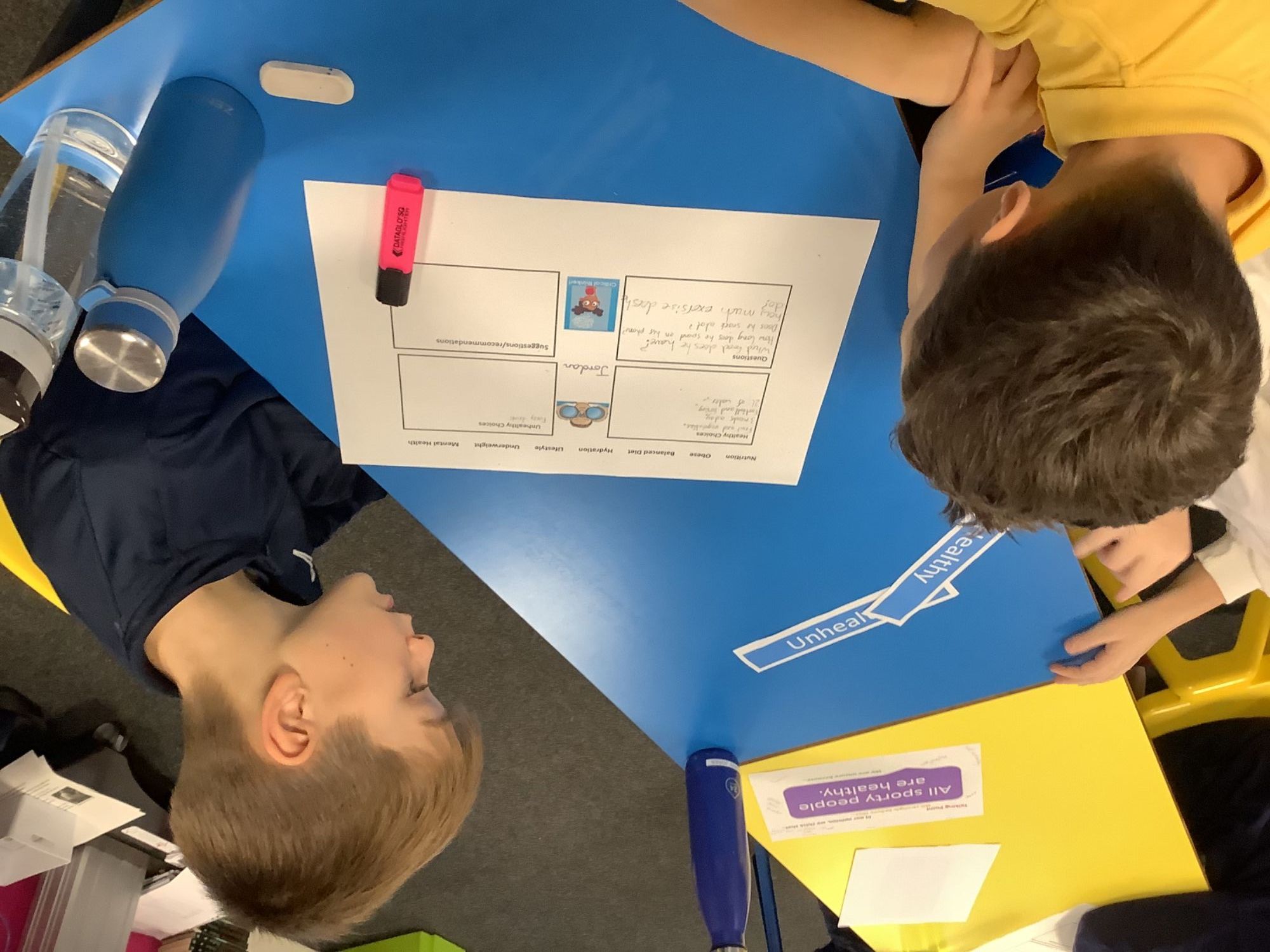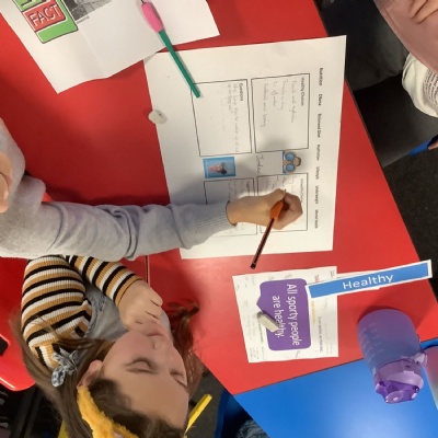 In science, the children have been exploring the lifestyles of different characters to explain whether or not they are healthy or unhealthy based on scientific research.