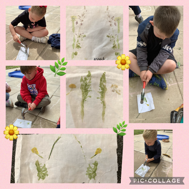 This week, Forest School welcomed The Sparrow Class. We Love having reception children to visit so this was a fantastic opportunity for them to learn a new skill. Our children started their "Tool" journey and had hands on experience of using a hammer to produce the most beautiful natural art. By putting their chosen flowers and wild grass in a piece of fabric and then gently controlling their hammer, they absolutely "nailed" (sorry!) the art of Flower Tapping.