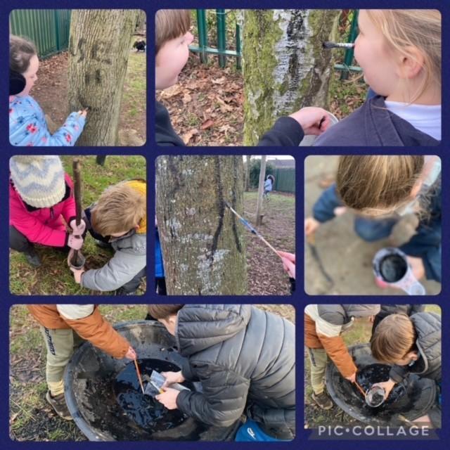 When Life gives you lemons...or in this case charcoal! After a fab mallow-toasting campfire in Forest School, our Yr4 children used the charcoal from the burnt wood to make cave paint. The coals were ground with a splash of water and mixed into a paste then our budding artists were let loose to be creative. We don't make a mess is Forest School, we just make memories.