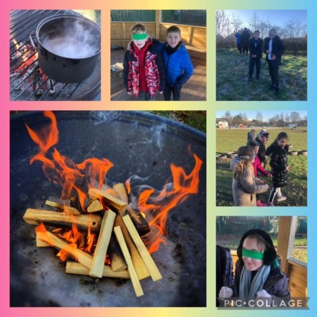 The weather last week in Forest School was fffffreezing!! Thank goodness we were all dressed for it and we were toasty warm. The Yr4 children put their trust in their peers when we played "easily led". We worked in pairs with one being blindfold and reliant on the other to direct them over obstacles to reach the finish line. This reinforces trust and polishes our communication skills too (and it's lots of fun!).