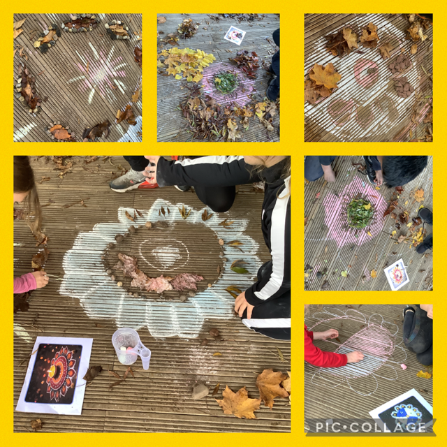 Last week in Forest School, Yr6 Phoenix class used natural resources to make rangoli patterns to celebrate Diwali. A colourful pattern placed at the door to welcome Lakshmi, the goddess of prosperity and wealth. Mindfulness activities that are done outdoors have so many health benefits and who doesn't like using coloured chalk too!