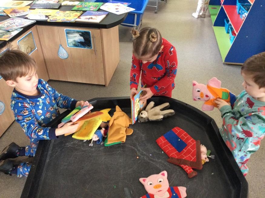 To celebrate World Book Day we came to school in our pj's and enjoyed looking at books with our friends before the register. We set up a range of activities based on some our favourite stories from this year.