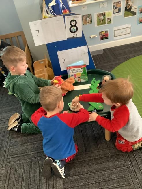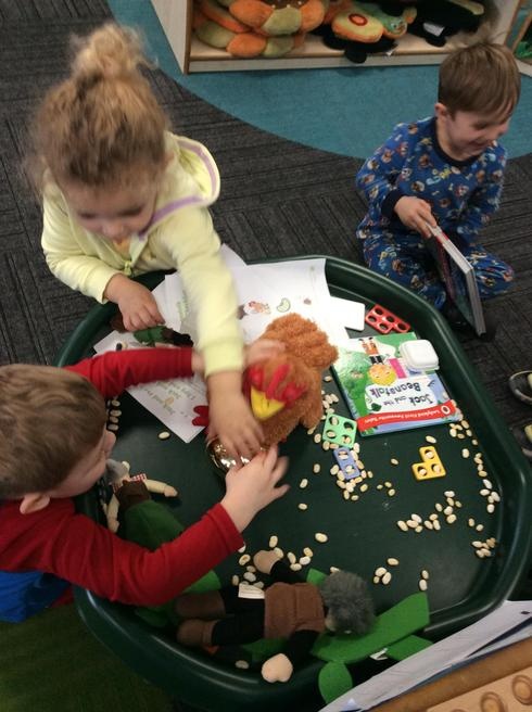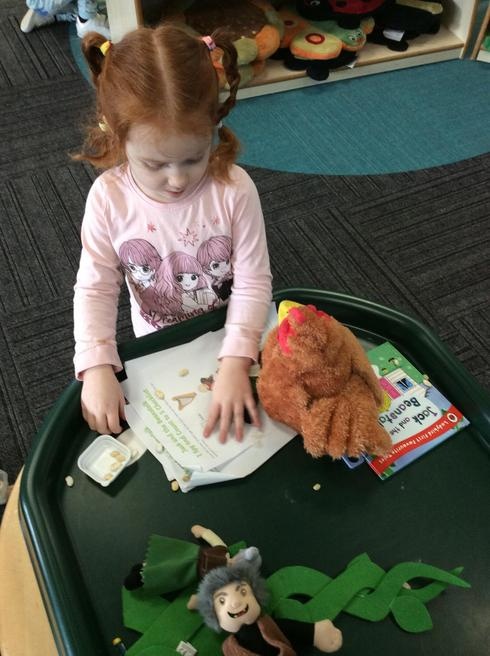The children enjoyed using puppets to retell stories, counting Jack's beans and making their own book marks.