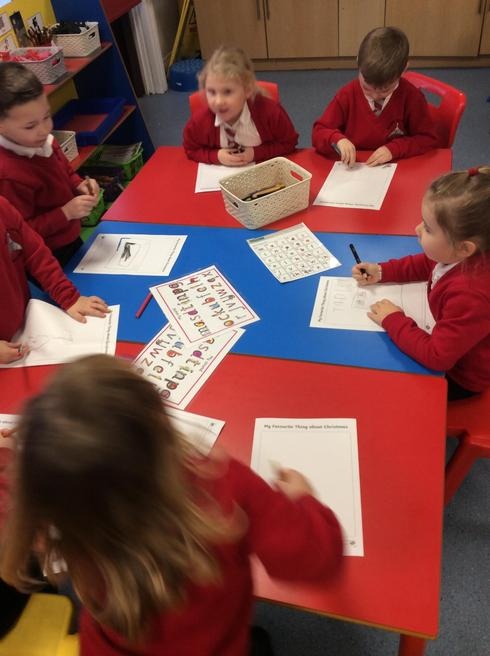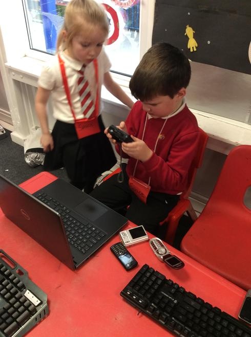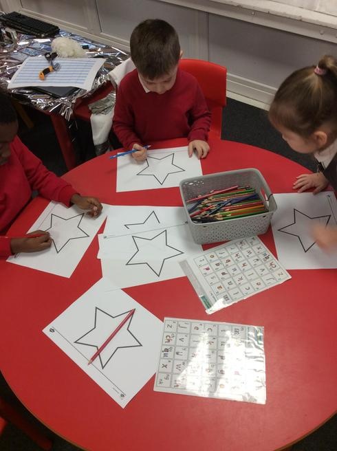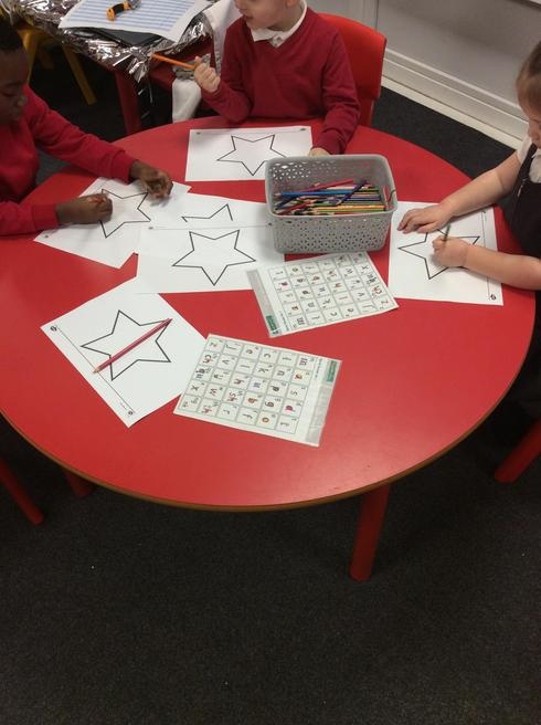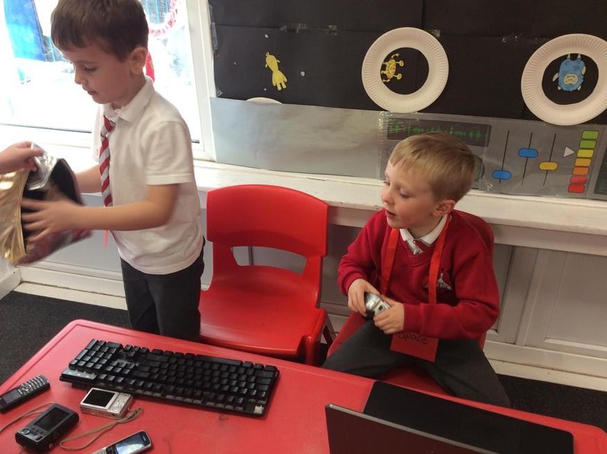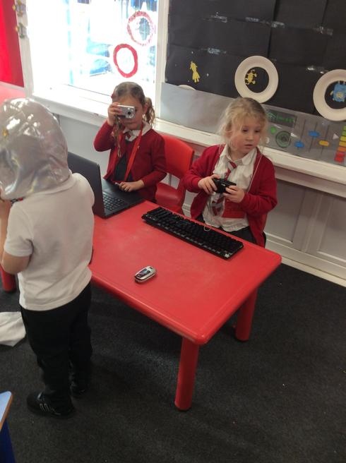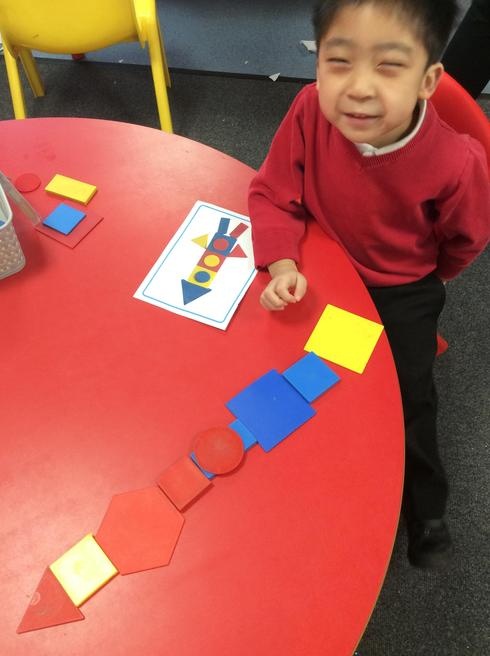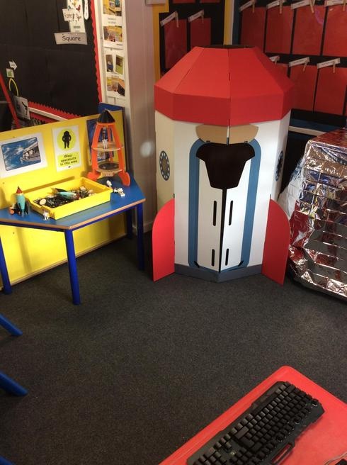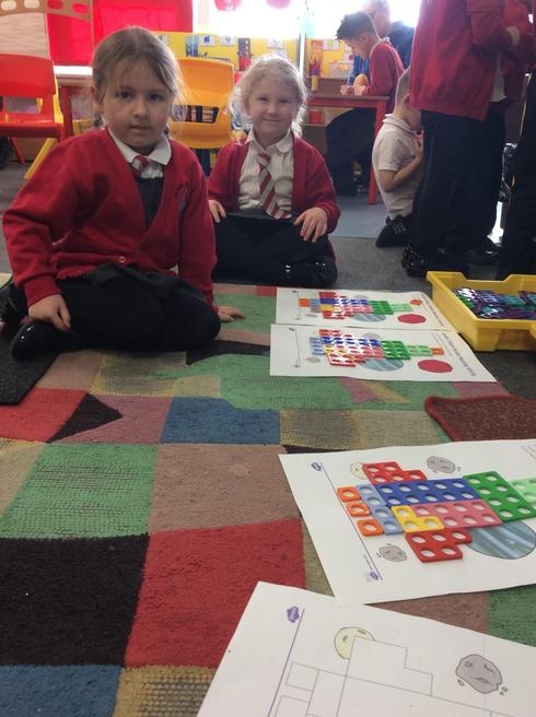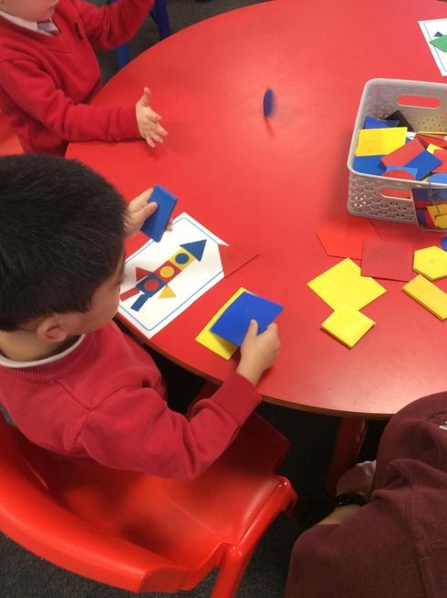 Children used 2D shapes to make rockets and other objects.