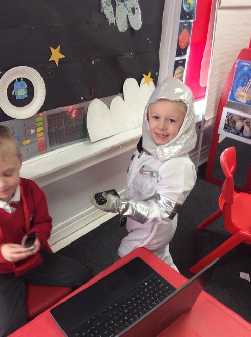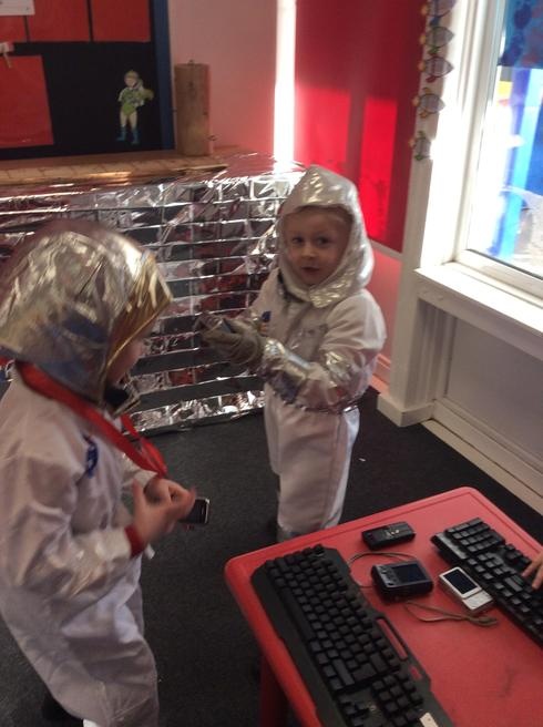 Using mini blocks to make astronauts and rockets.