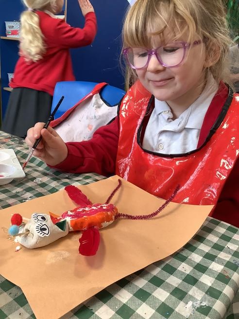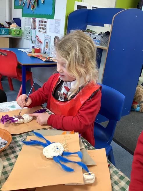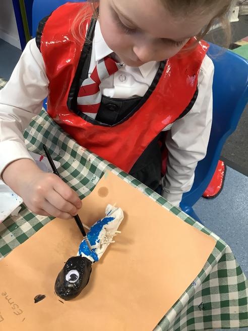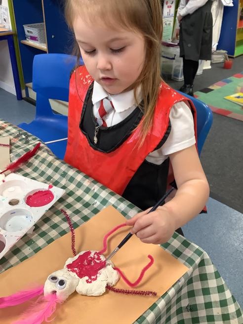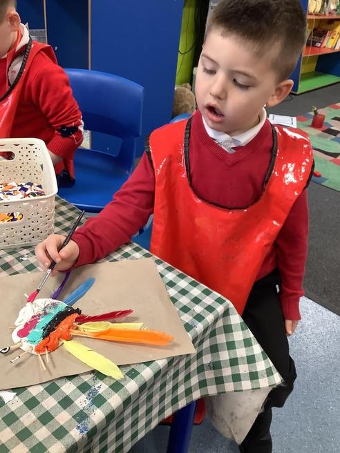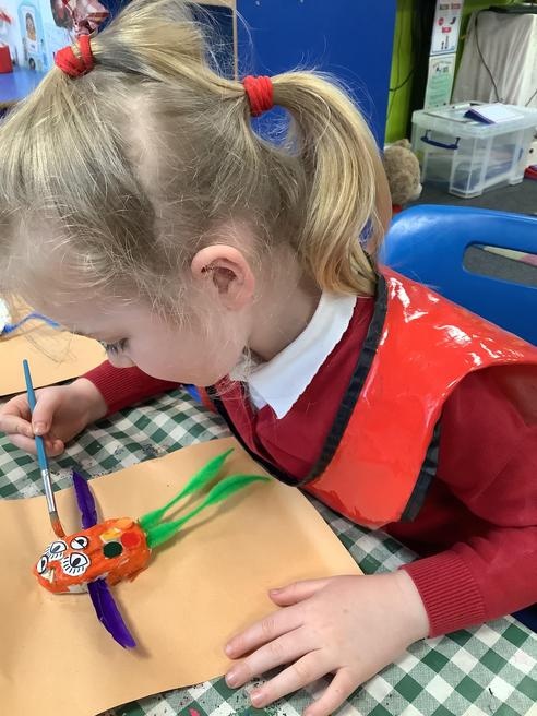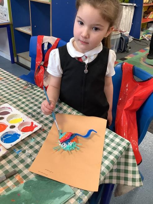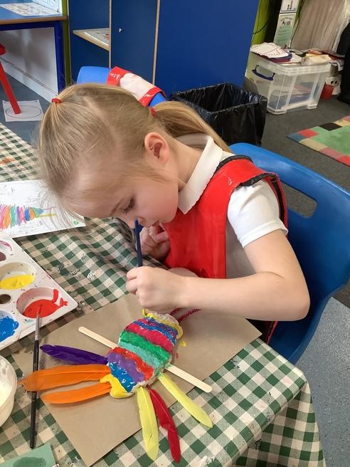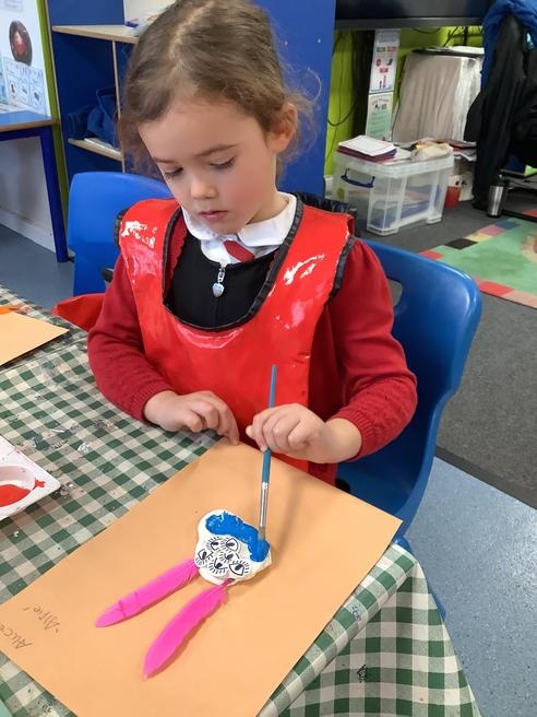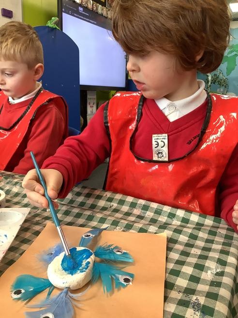This week we have been very busy finishing our aliens. We used paint,feathers,googley eyes and straws to help make them complete. We think they are amazing.