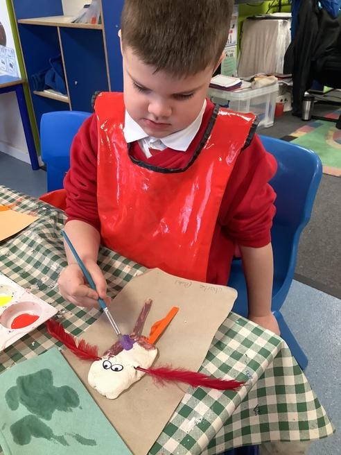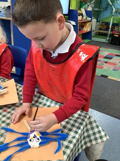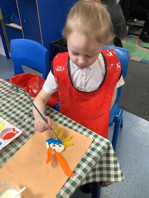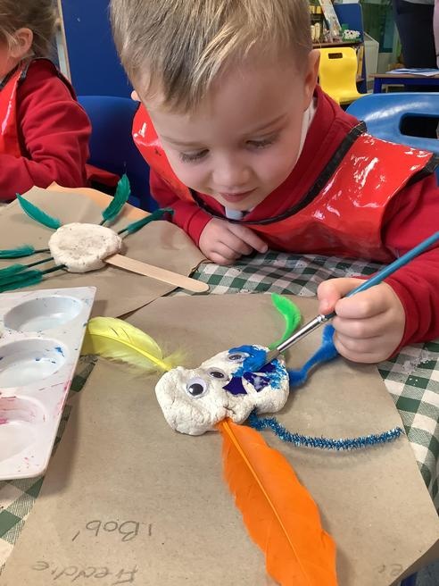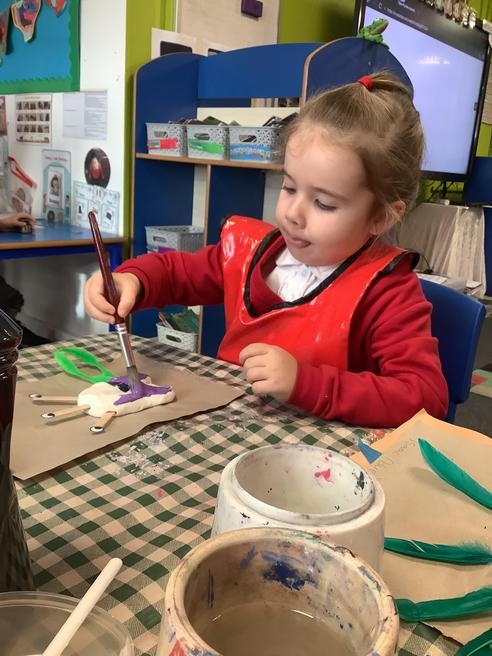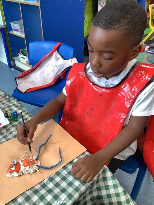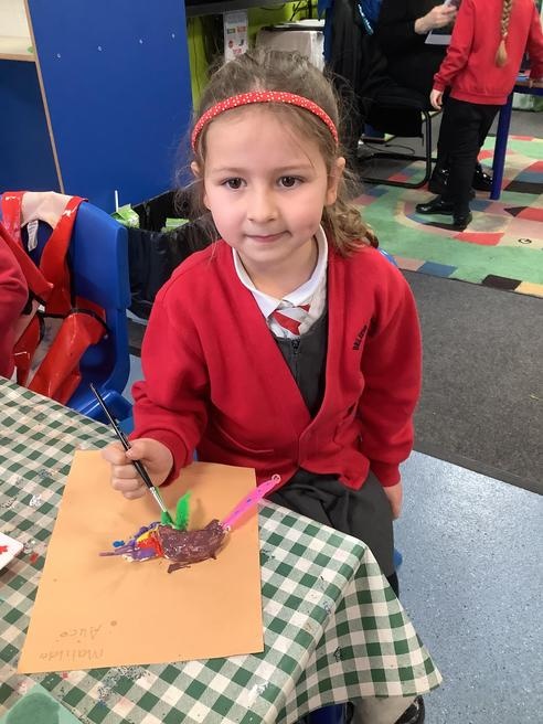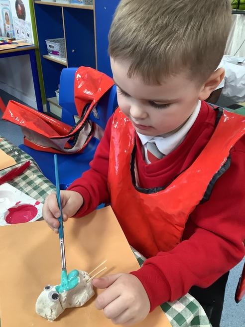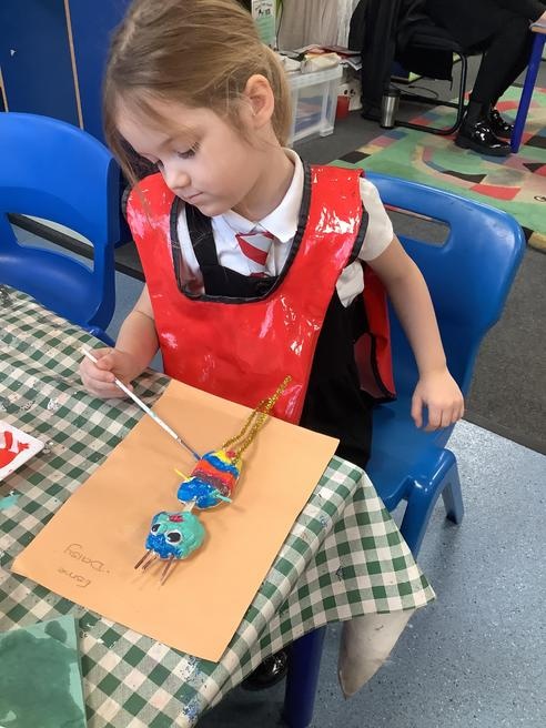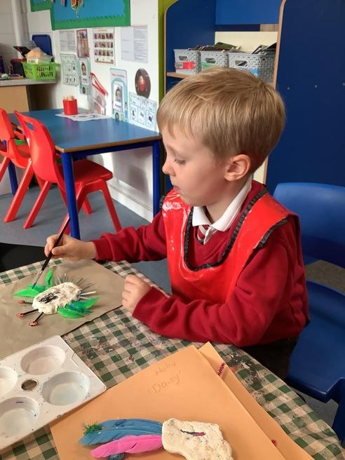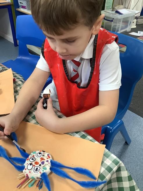 This week we have been very busy finishing our aliens. We used paint,feathers,googley eyes and straws to help make them complete. We think they are amazing.