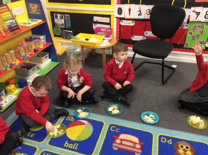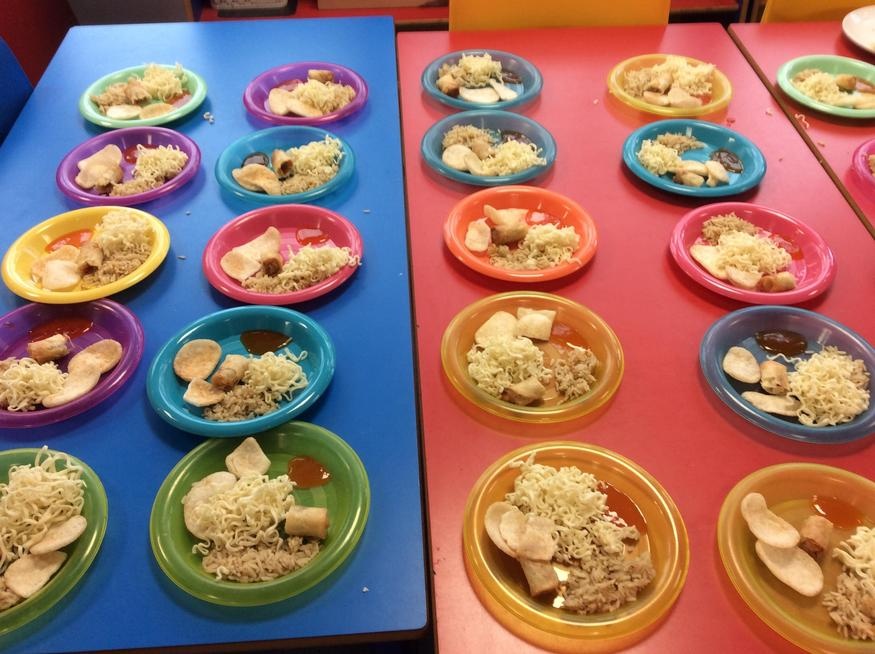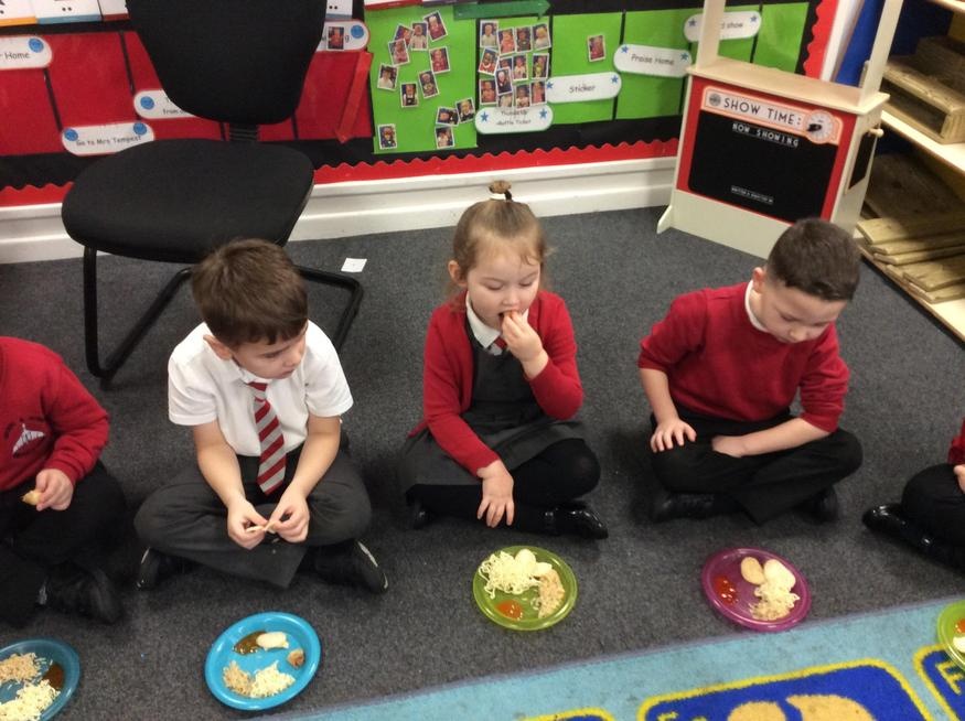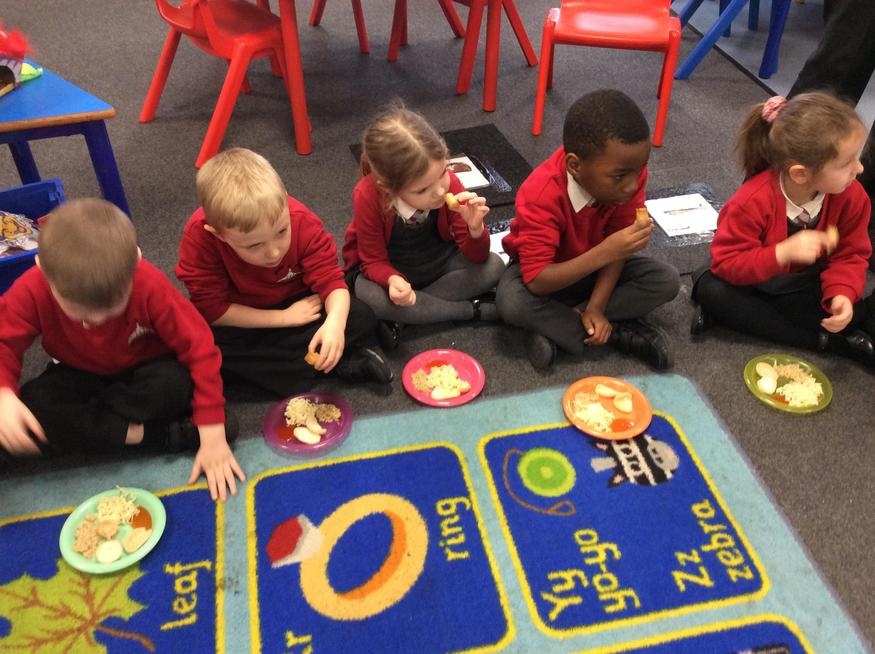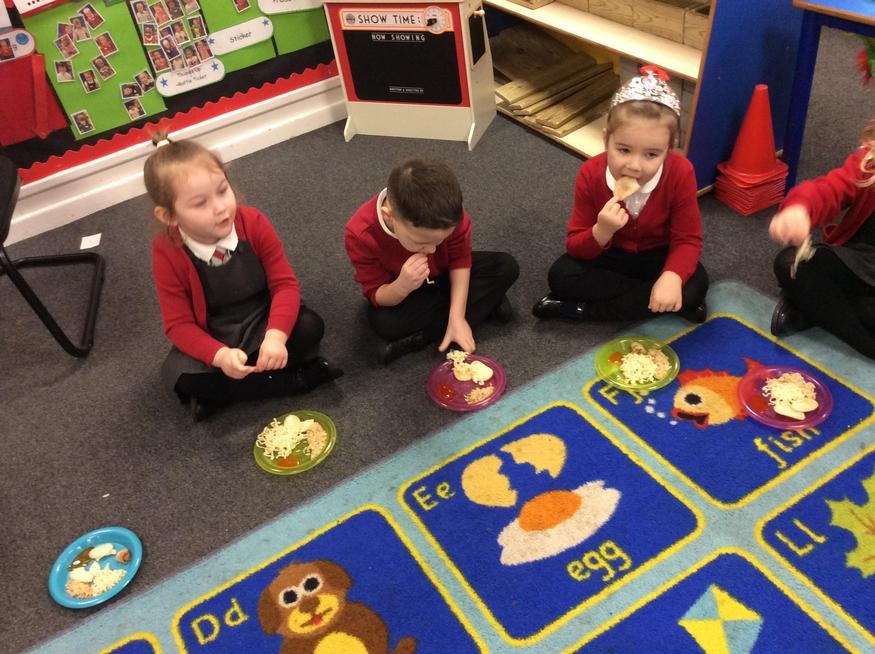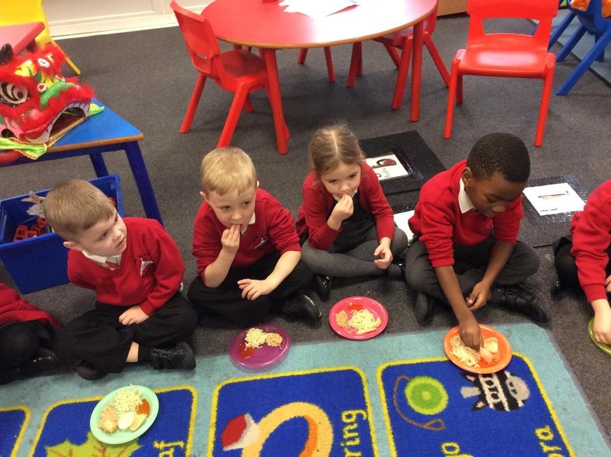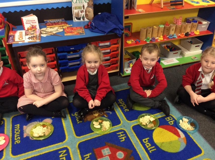We also tasted some Chinese food. We tried some noodles, fried rice, prawn crackers, spring rolls and some sweet and sour sauce. We thought the crackers were crunchy and we really liked the spring rolls. We all though it was yummy.