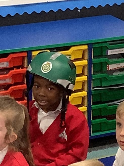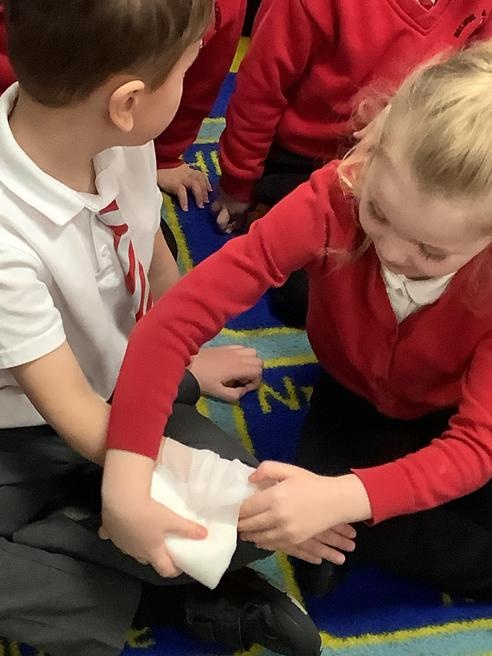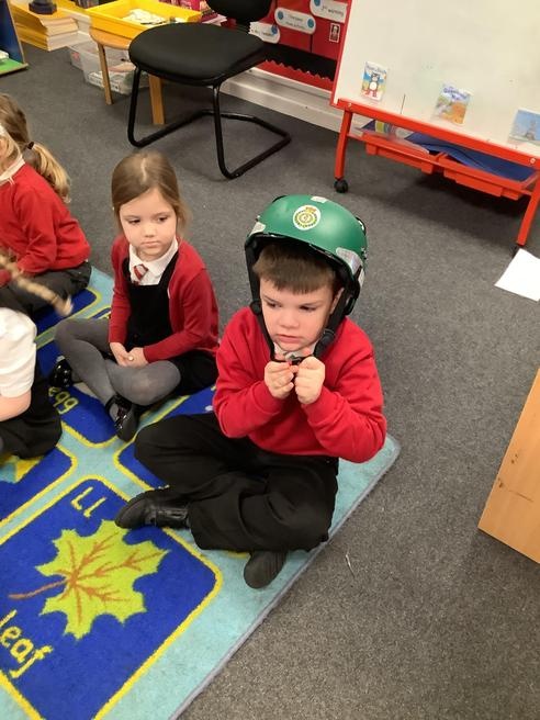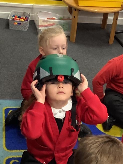 We were lucky enough to bandage our friends up to make the better and try on the safety helmet.