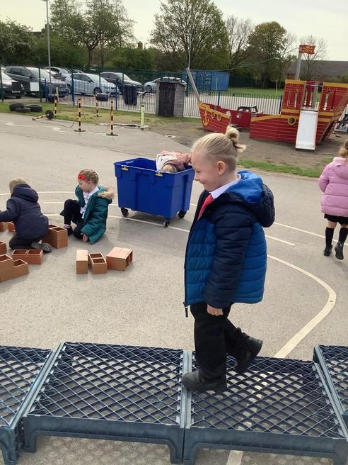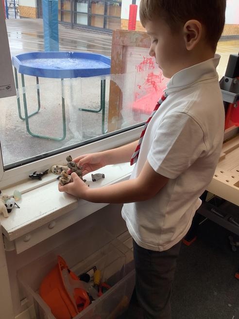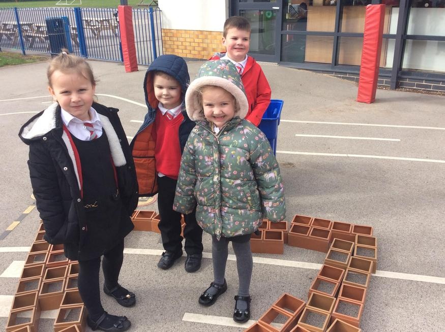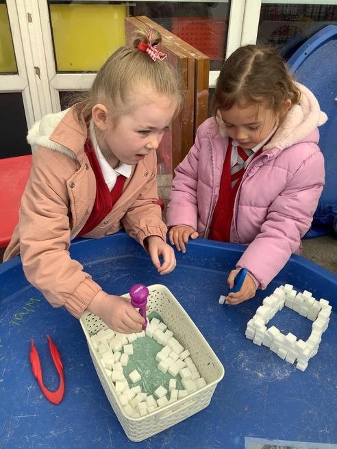 We continued our learning outside, we built igloos out of sugar cubes and bricks, we found real and alien words in our sandpit and did some amazing addition with the numicon.