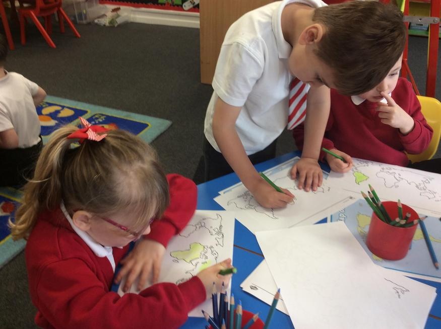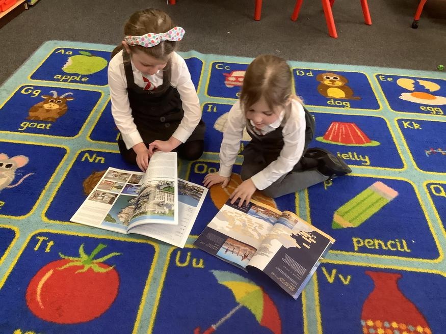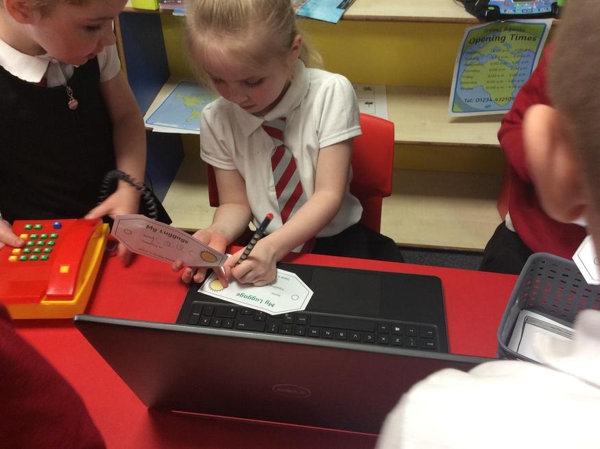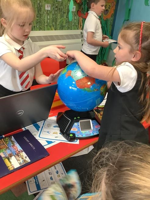 In our role play area we have been learning about how to be Travel Agent. We looked at the globe and brochures to help us decide where we wanted to go on our holidays. Mrs Nottage and Mrs Abson decided they wanted to go to the beach.