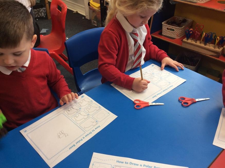 We have had a very busy first week back at school, we have been learning about the North and South Pole and what animals live there. We also discussed if it would be a good idea to have a Polar Bear or Penguin as a pet.. We also used our fine motor skills to make some Polar Bears and Penguins.