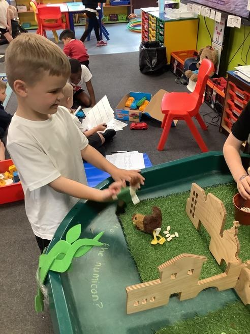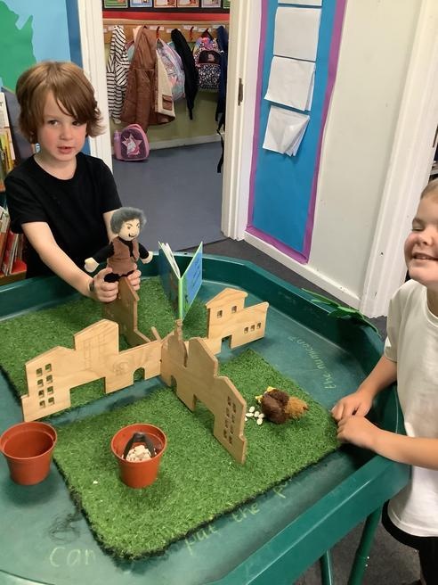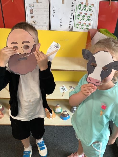 We have been recounting the story this week in lots of ways, we acted out parts of the story ourselves and used masks and puppets to help retell the story.