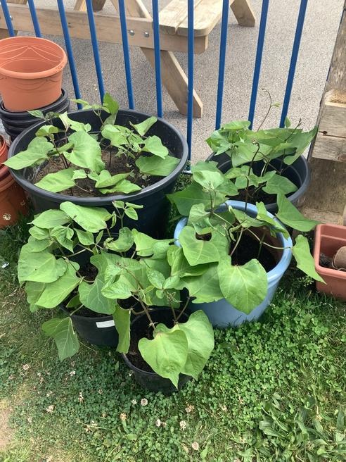 Our beans are continuing to thrive , we have watered them and they have enjoyed the sunshine. They are getting bigger and bigger.