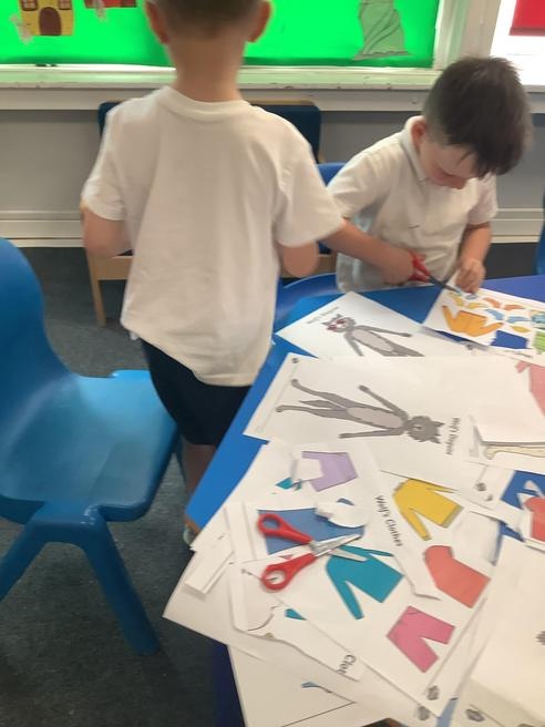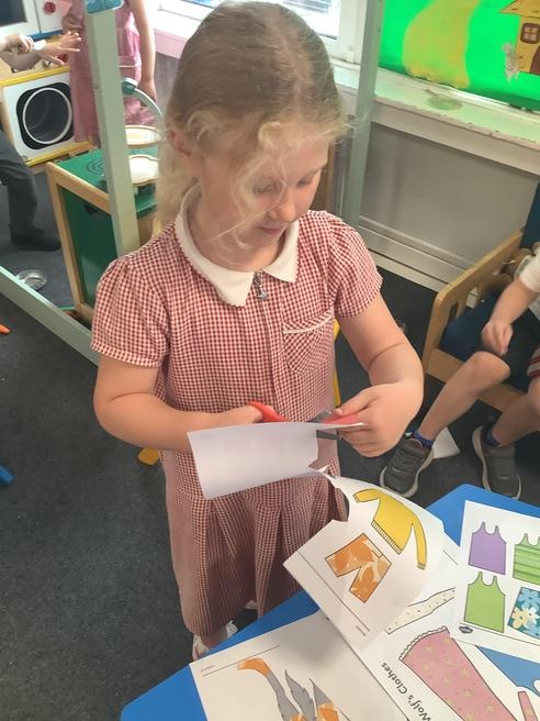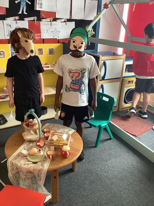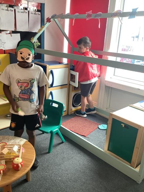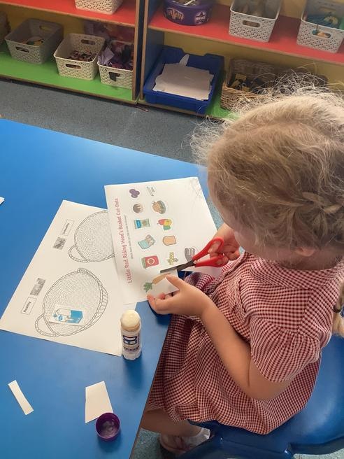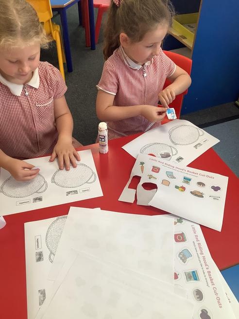 As well as getting into characters we looked at what type of food Little Red Riding Hood would take to Granny in her basket and if it was healthy or unhealthy. We talked about why we need healthy food. We also made some fantastic disguises for the wolf.