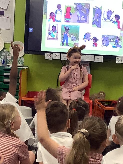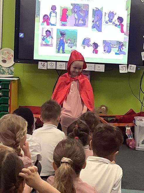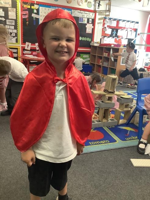 We have continued with our ‘Once Upon a Time’ topic and we have been looking at the story of Little Red Riding Hood, we looked at different endings of this story and we have really enjoyed getting into the characters this week. We also really enjoyed ‘ hot seating’ when Little Red Riding and the Wolf answered some questions.