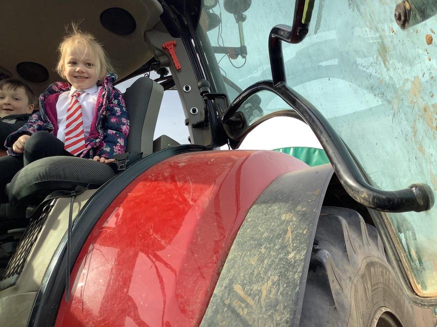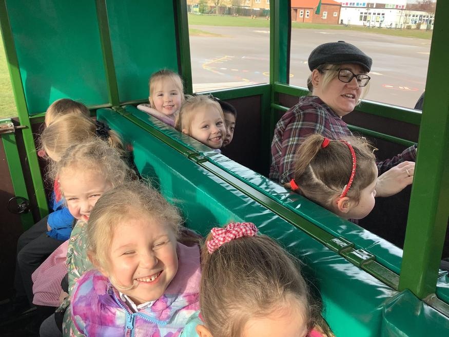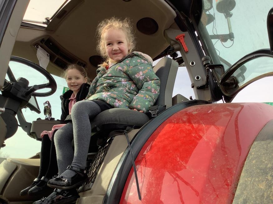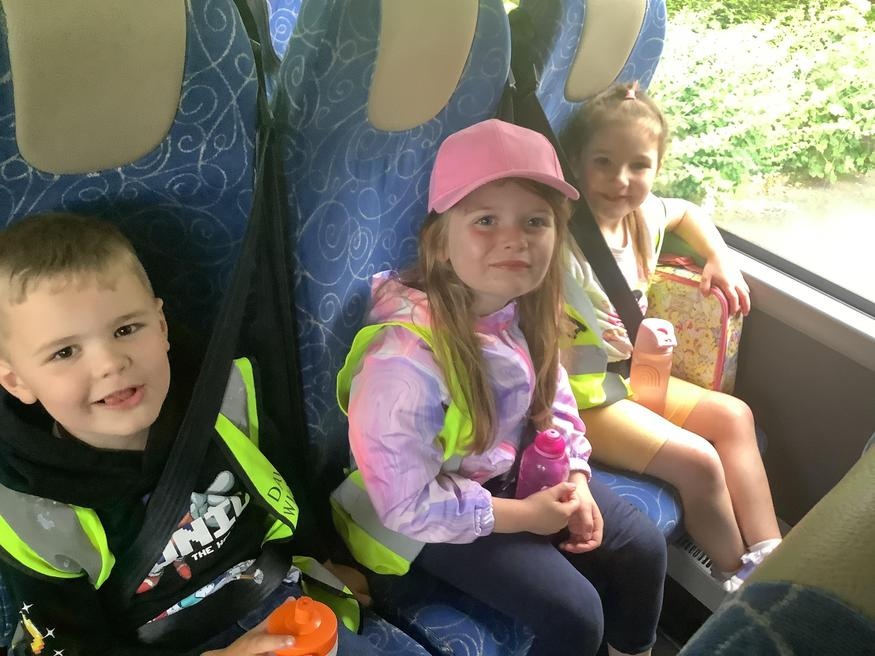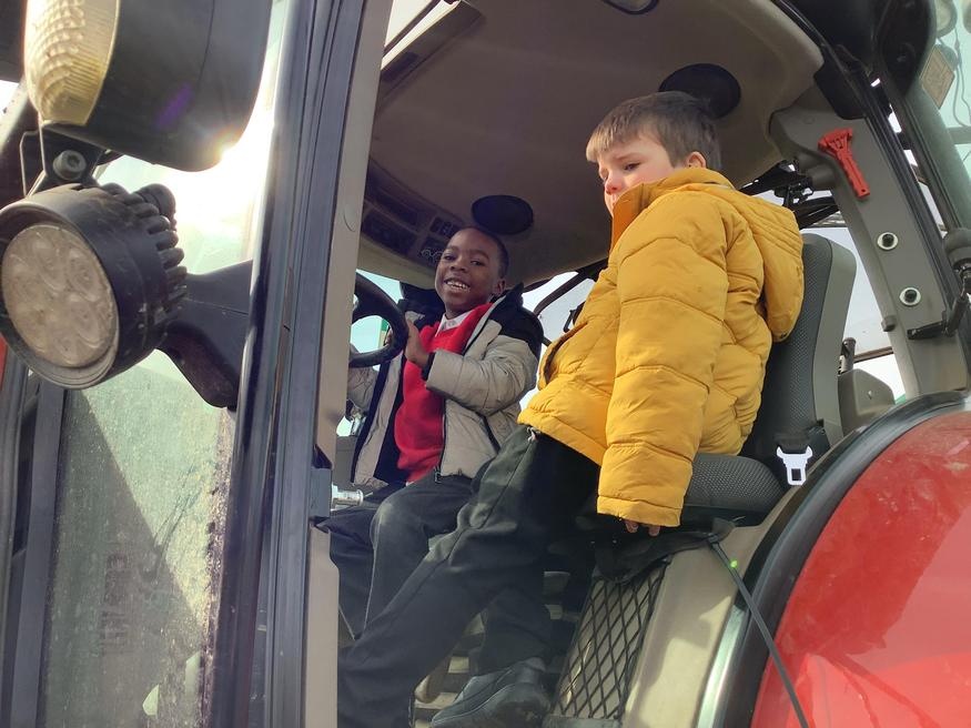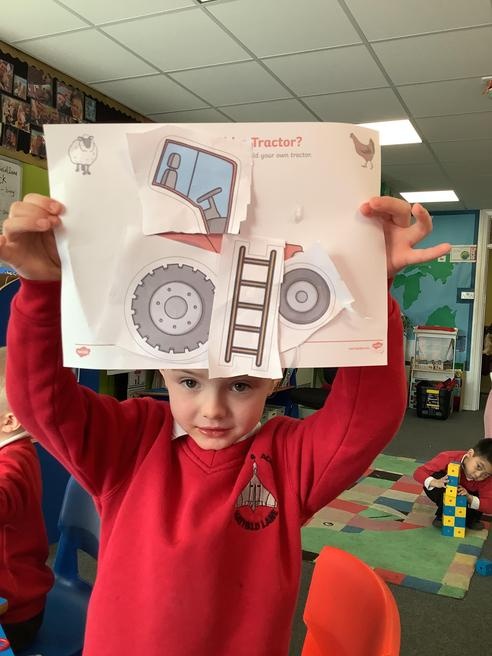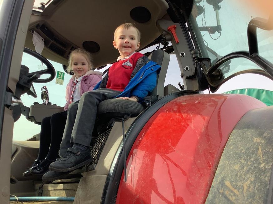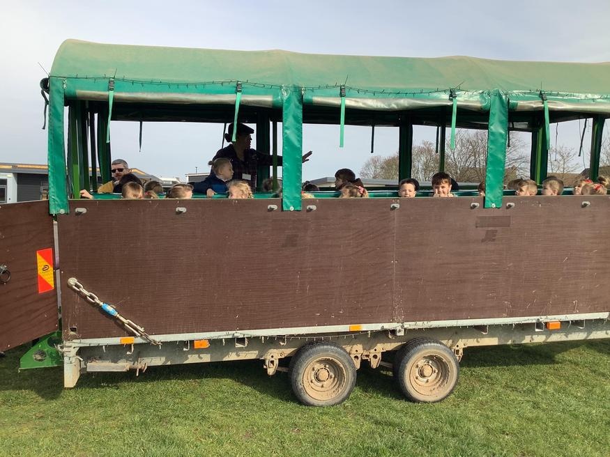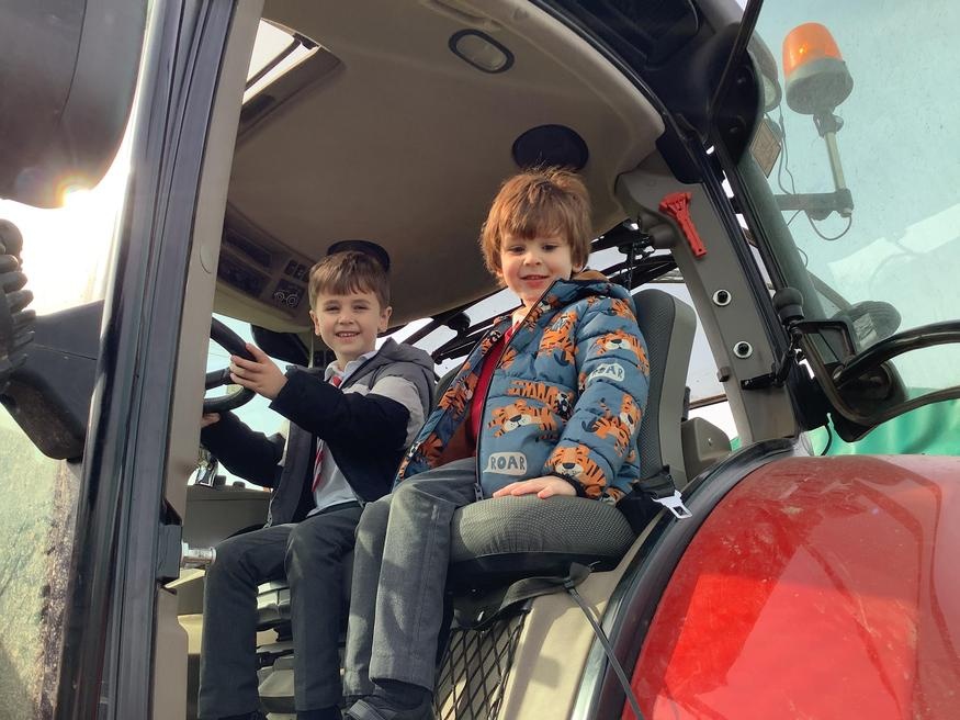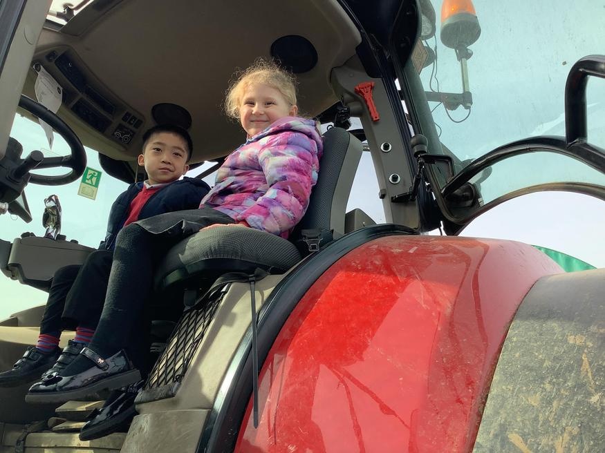 We also had a ride in the tractor trailer ,we went round the field and up the hill. We sang Old McDonald as we went round. We then got to sit in the front of the tractor it was very high up. We enjoyed going on the tractor.