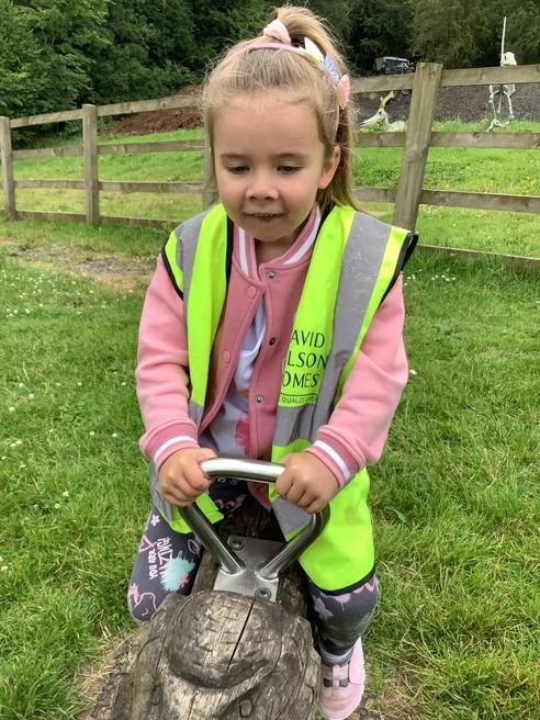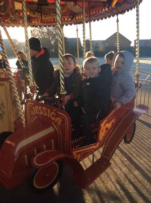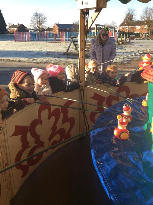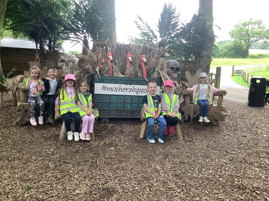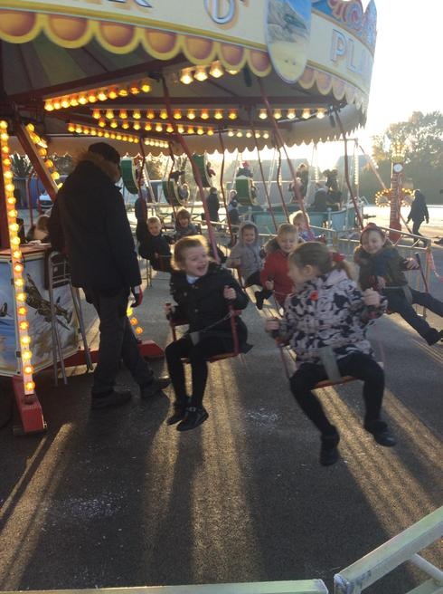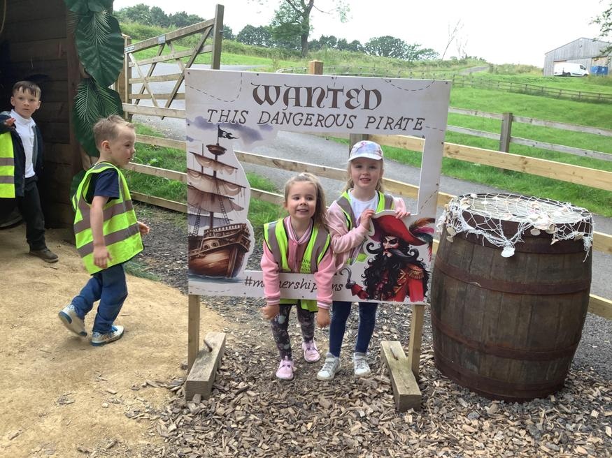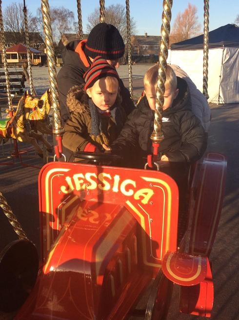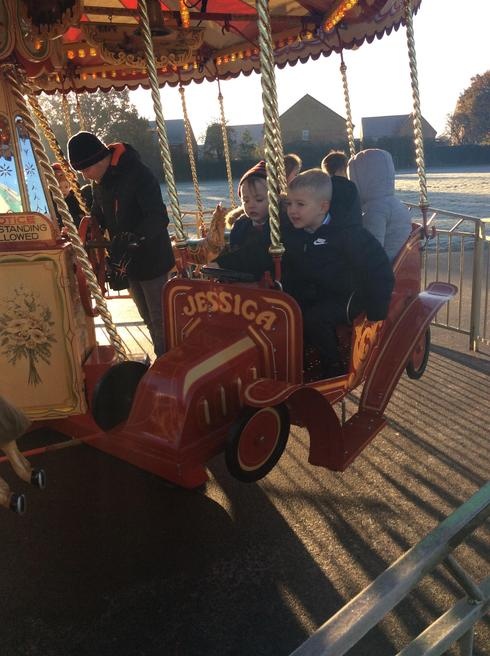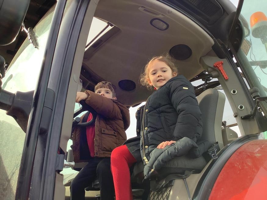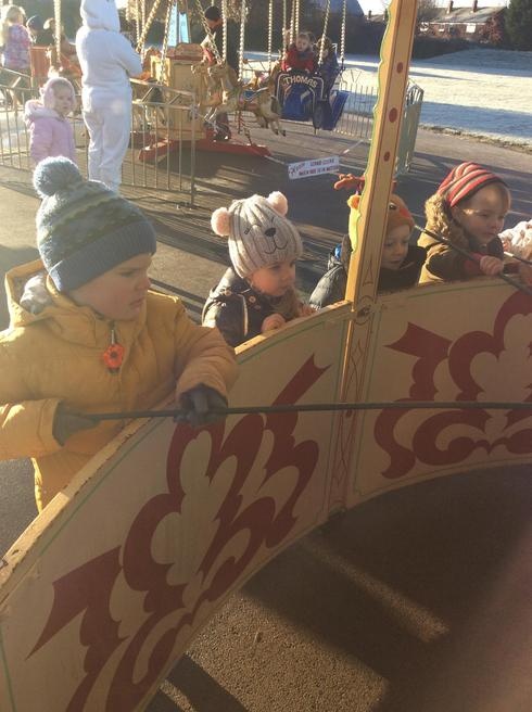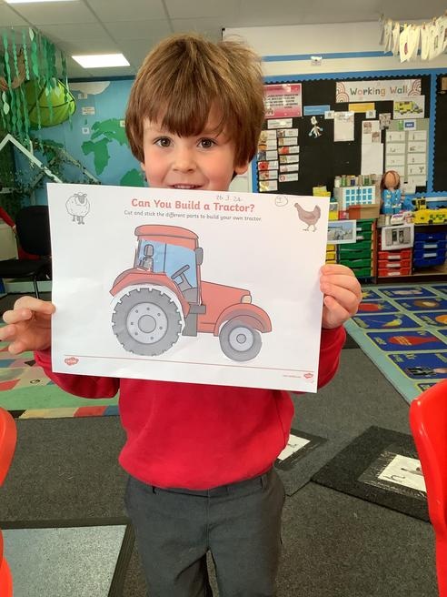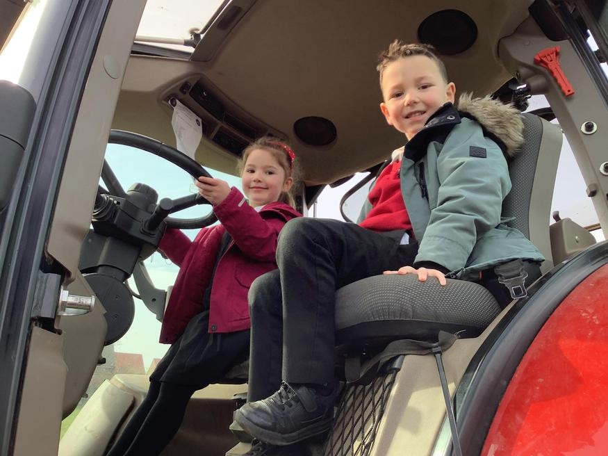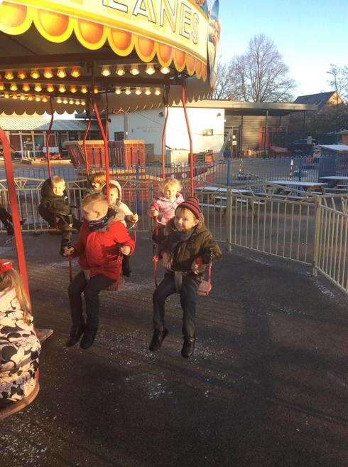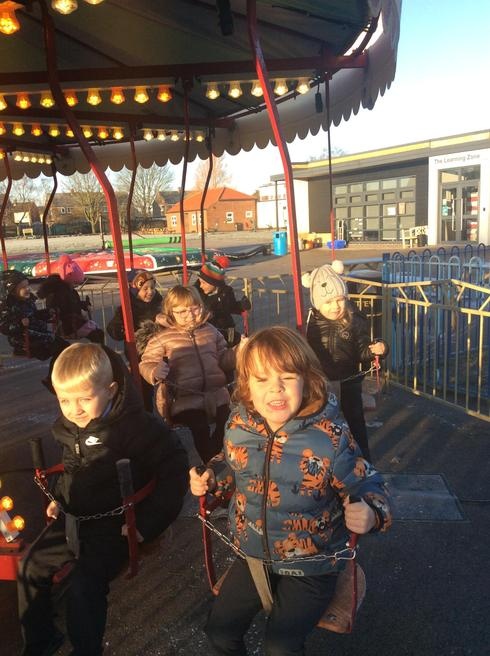We also had a ride in the tractor trailer ,we went round the field and up the hill. We sang Old McDonald as we went round. We then got to sit in the front of the tractor it was very high up. We enjoyed going on the tractor.