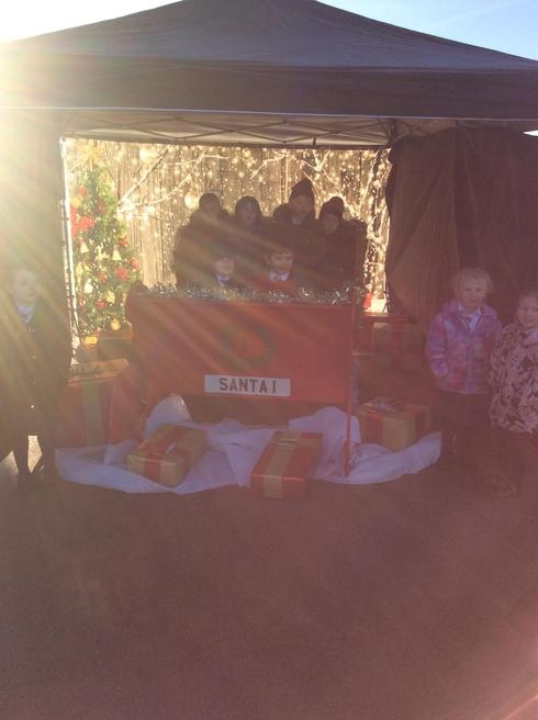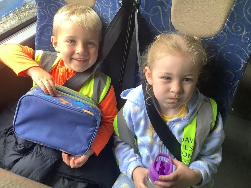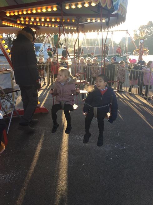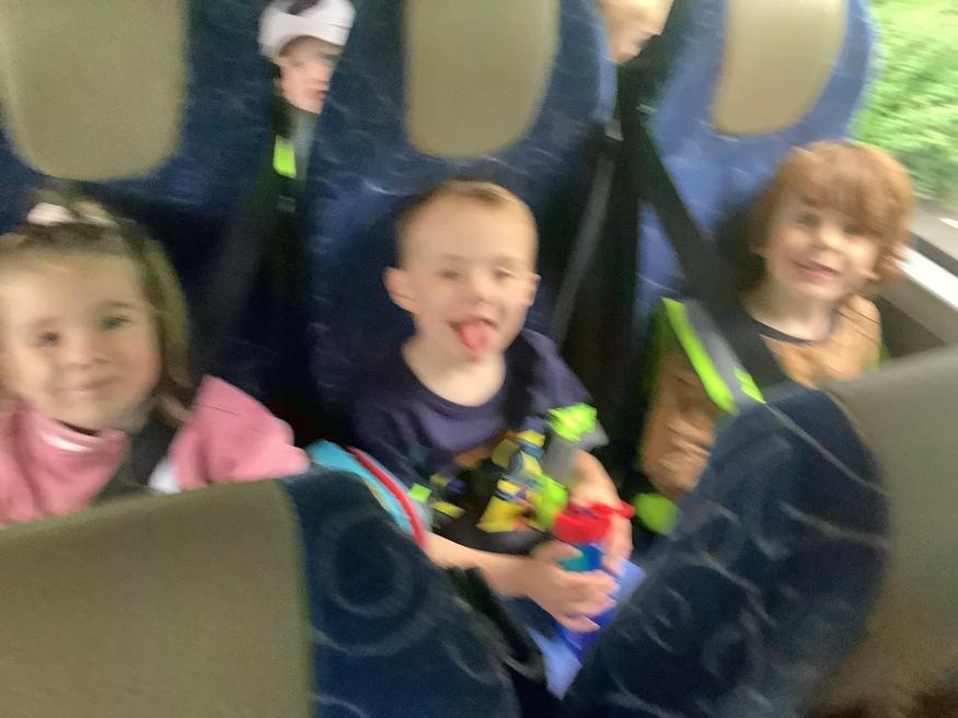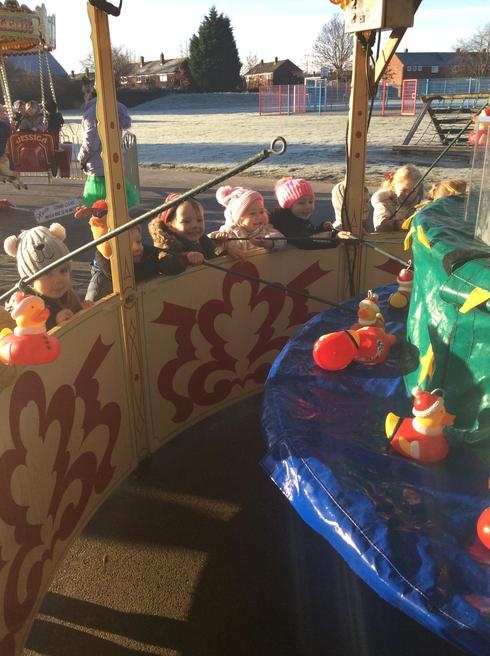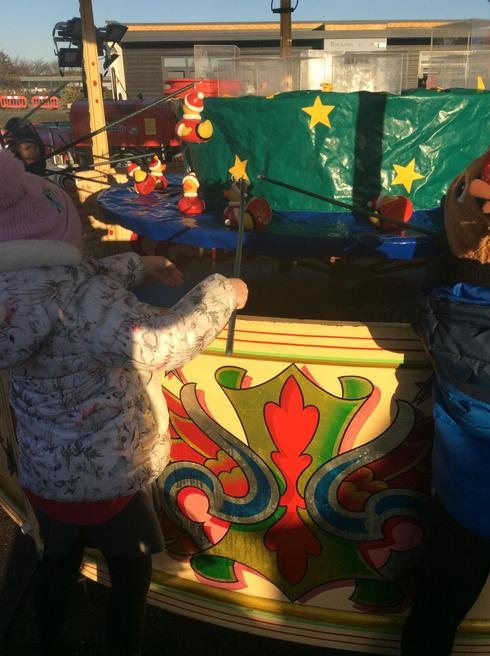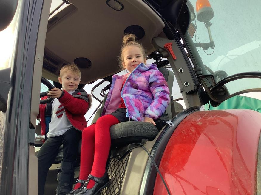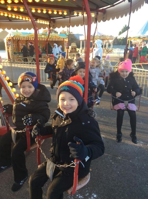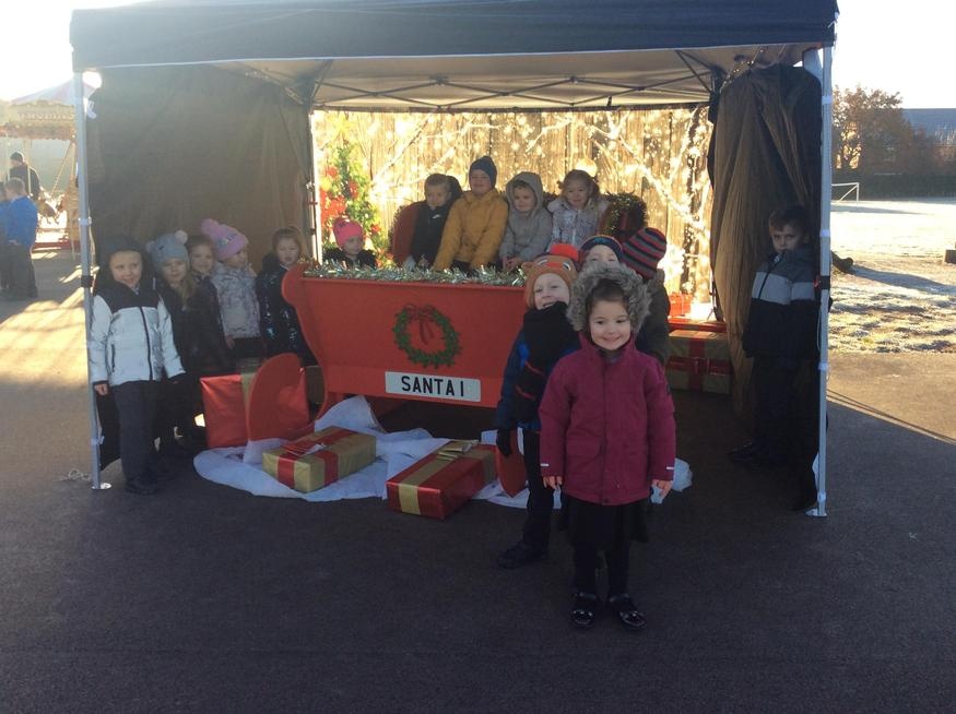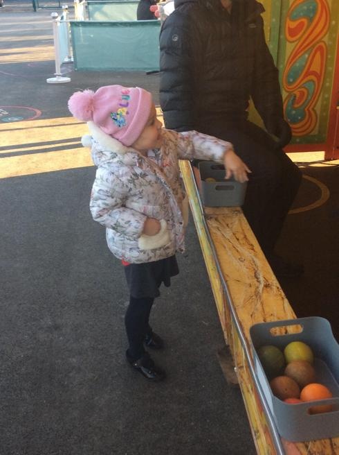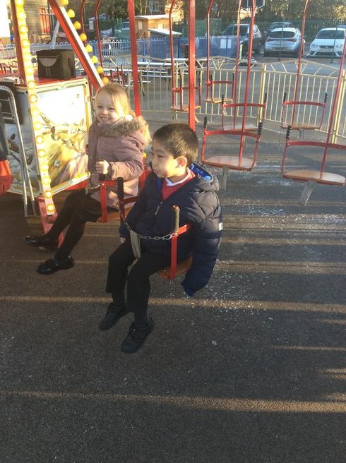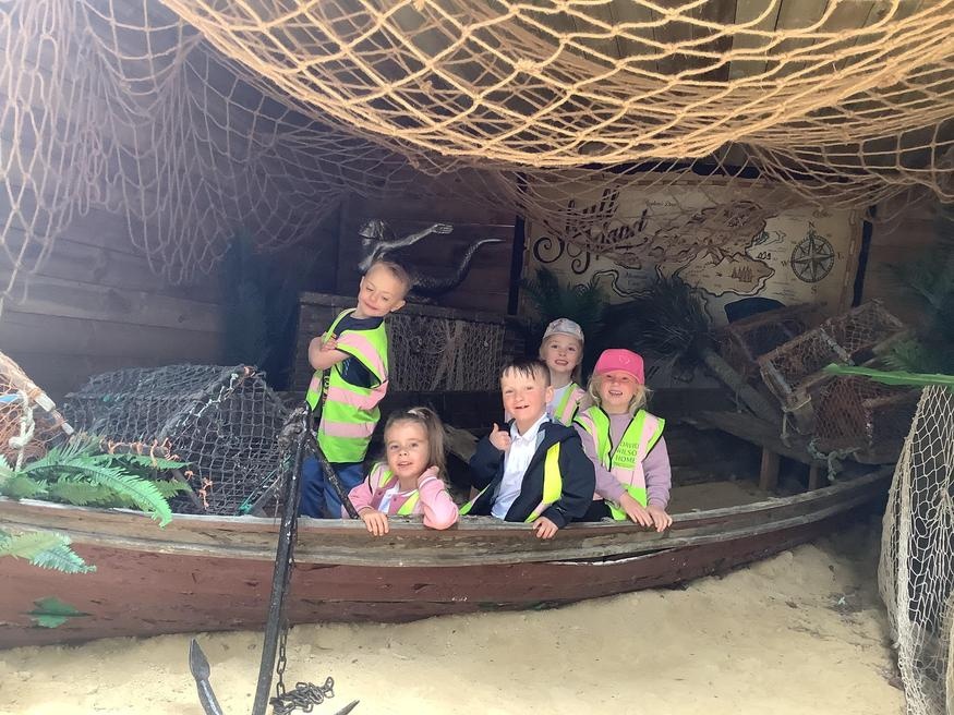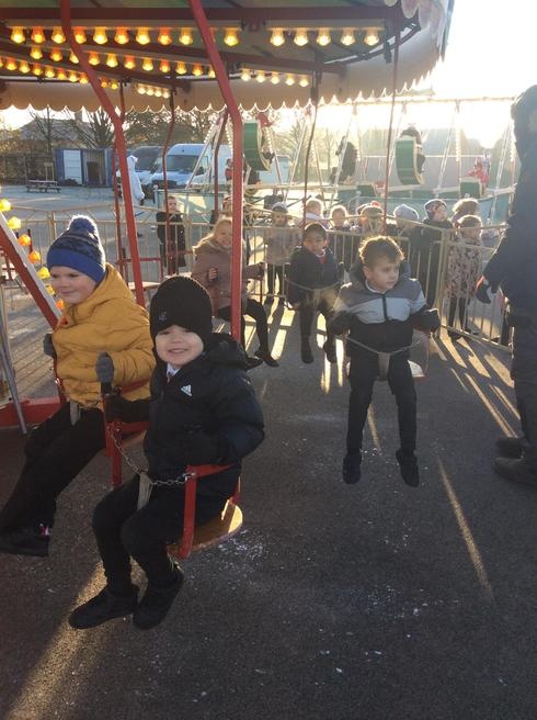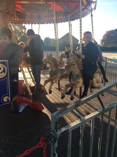 We also had a ride in the tractor trailer ,we went round the field and up the hill. We sang Old McDonald as we went round. We then got to sit in the front of the tractor it was very high up. We enjoyed going on the tractor.