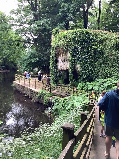 We arrived at Knaresbrough and was met by our guide James ,he took us on the trail to the petrifying waterfall and Mother Shiptons cave. All the objects in the well had turned to stone because if the special gas in the water. We then made a wish in the well, the water as very very cold. We then went into the cave where Mother Shipton had once lived . We decided we would not like to live in the cave as it was very dark and very cold.