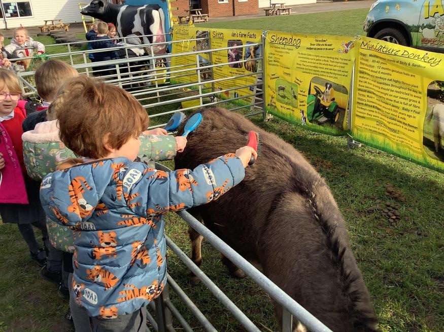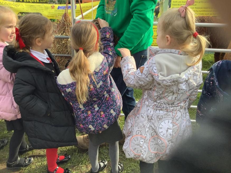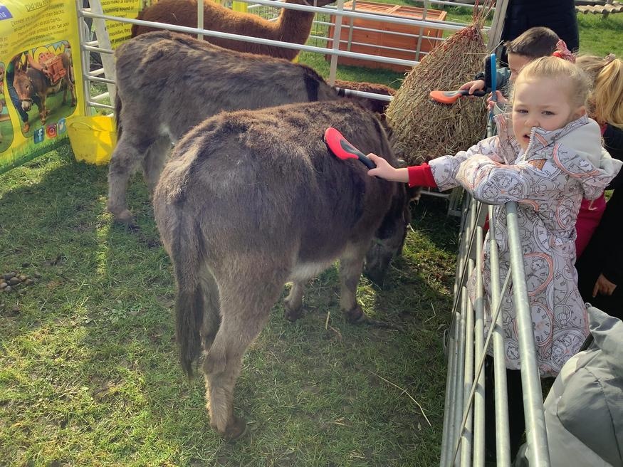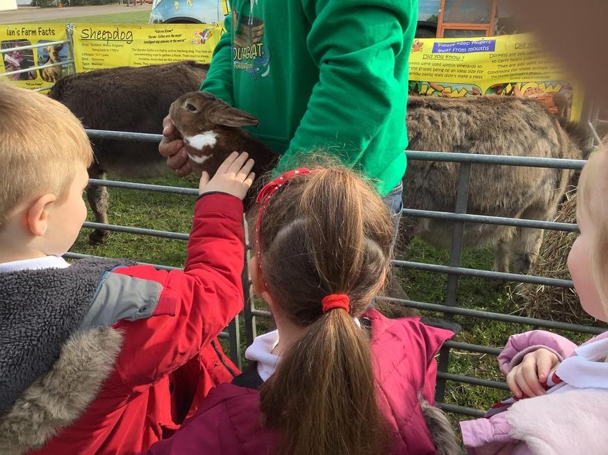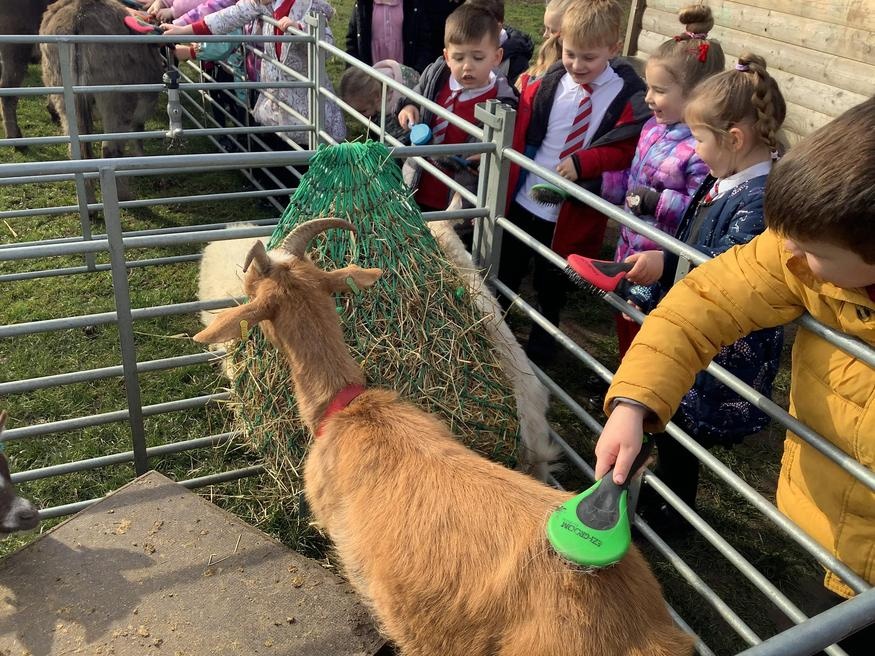 What an amazing day we have had ,we got to meet all the farm animals and stroke and groom them, We thought Benjamin Bunny was really soft to touch. Dotty the pig was very hungry and Meg the sheepdog really enjoyed it when we threw her ball for her to fetch.