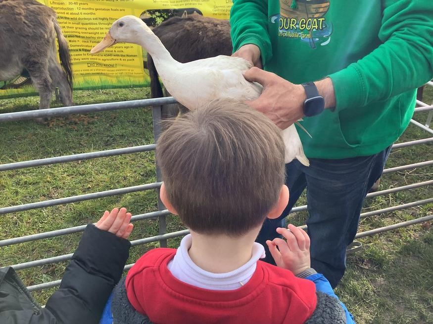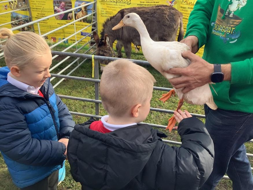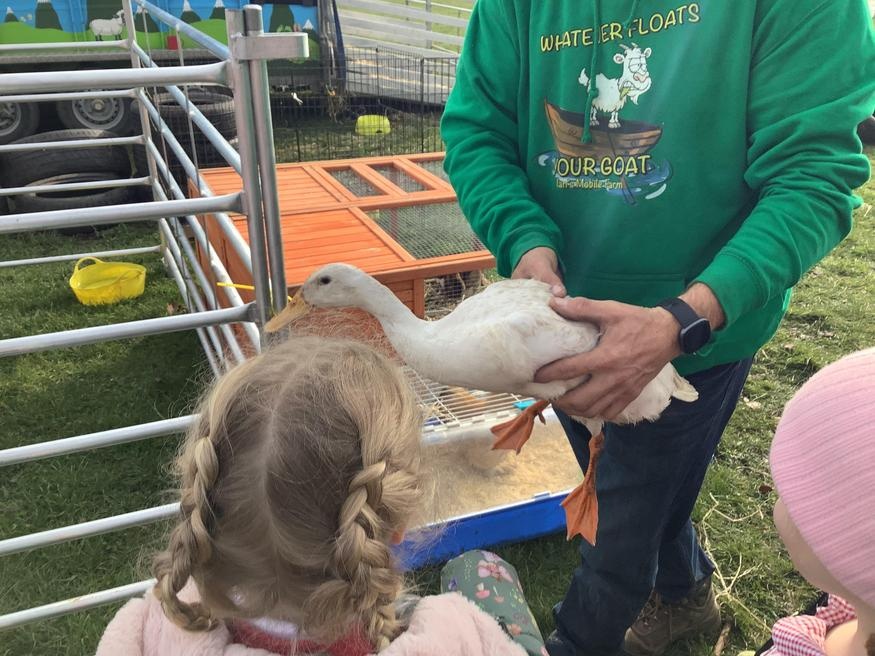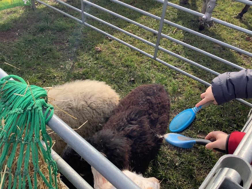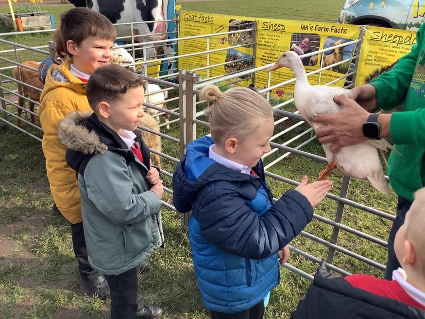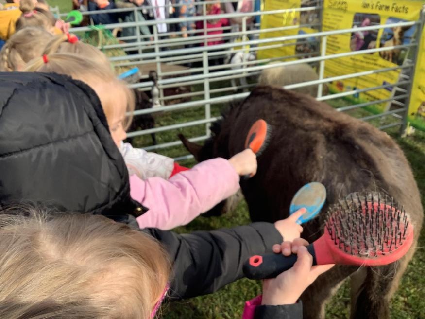 What an amazing day we have had ,we got to meet all the farm animals and stroke and groom them, We thought Benjamin Bunny was really soft to touch. Dotty the pig was very hungry and Meg the sheepdog really enjoyed it when we threw her ball for her to fetch.