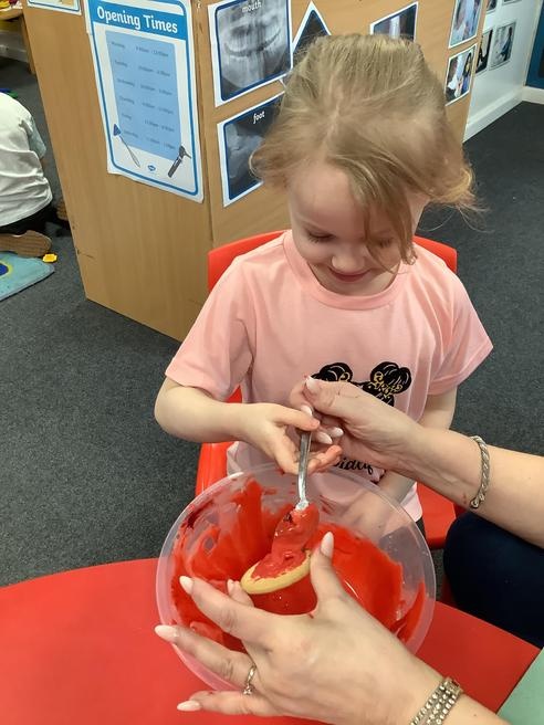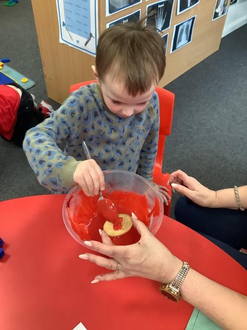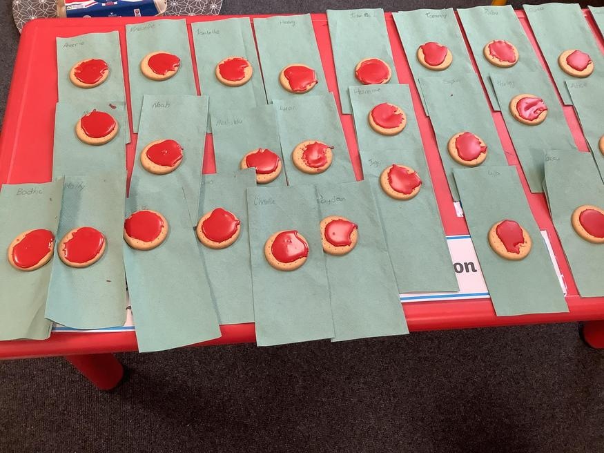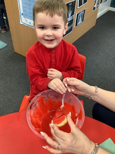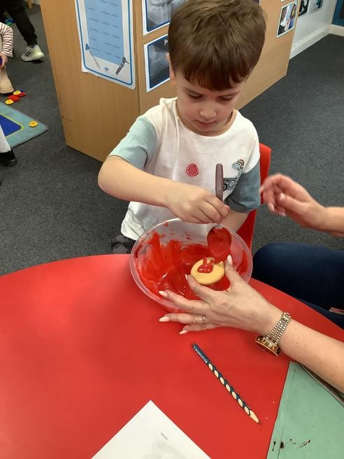 We had a cake sale to help raise money, we really enjoyed the cakes. In the afternoon we iced some red nose biscuits and we also played teachers reading red words. What an amazing day we have had.
