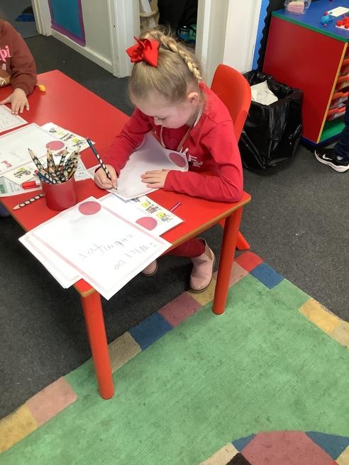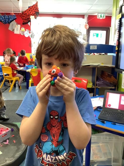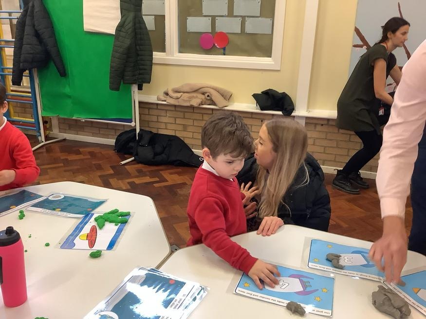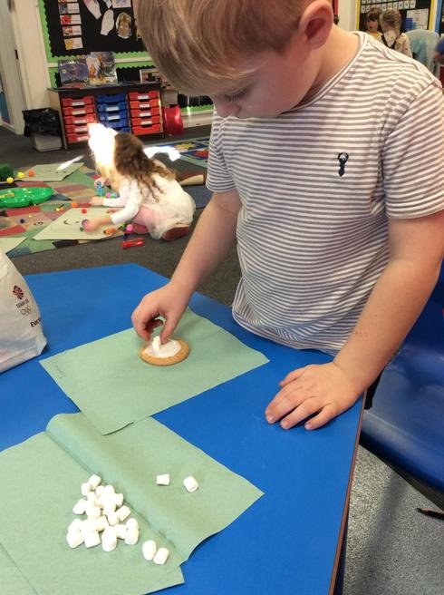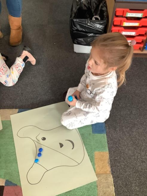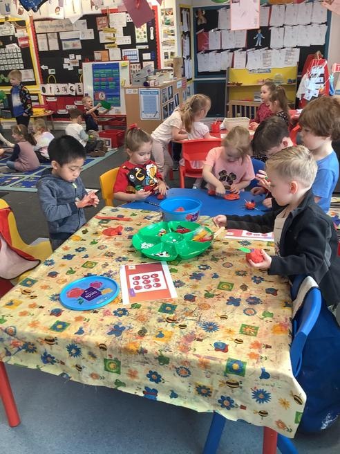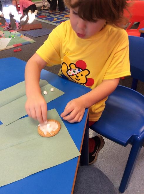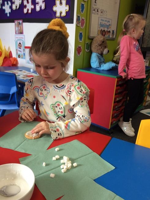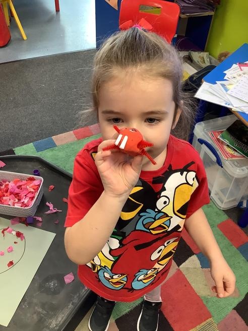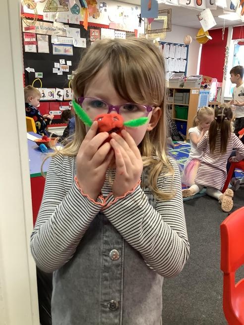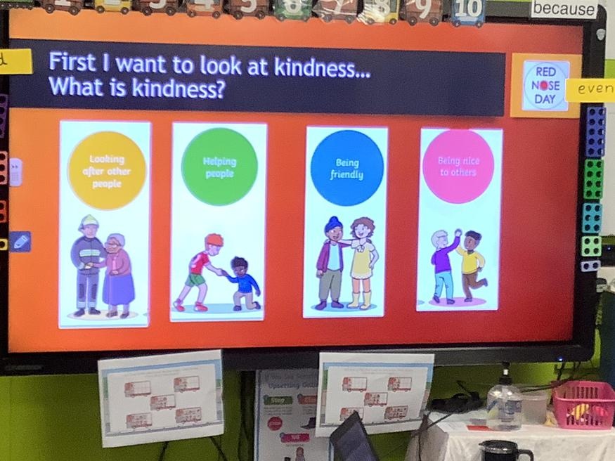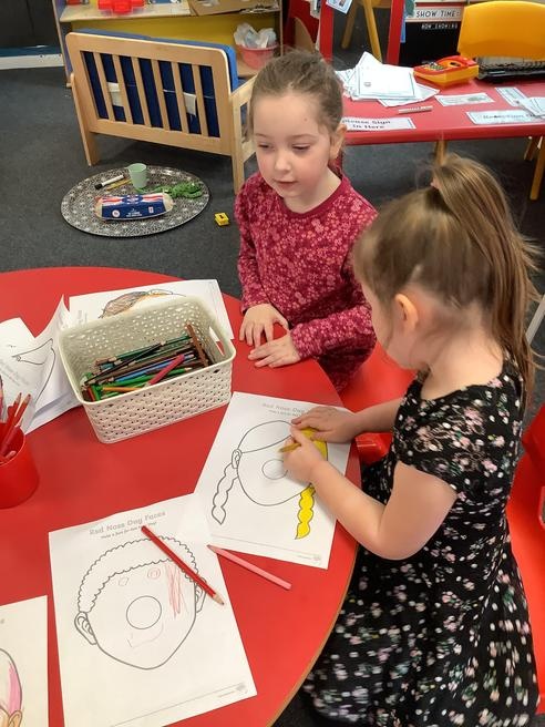 This Red Nose Day we had lots of different activities to choose from, we could count out red Pom Pom noses on to a 10s frame using tweezers, we made a huge paper tissue heart collage, we made some amazing red noses with play dough, we coloured in some faces with red noses on, used sticklebricks to make houses for people who had nowhere to live and iced some red nose biscuits. We also watched and talked about what it is to be kind. The children said being kind is saying “ kind words, helping each other, helping people, being kind to each other, sharing things, helping people to walk.” We also decided our class motto for today is “it’s nice to be nice”