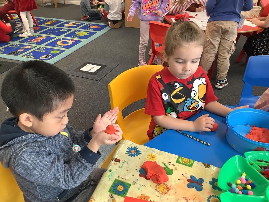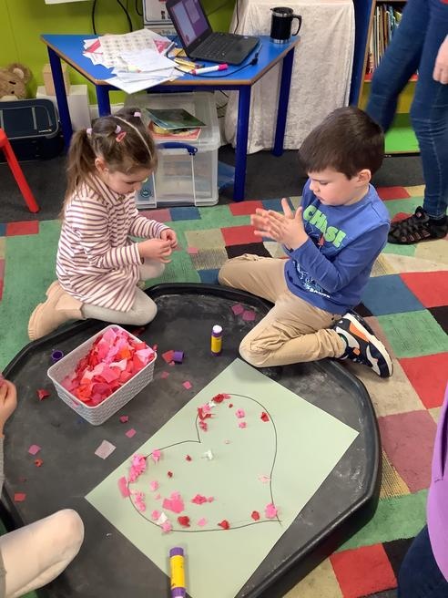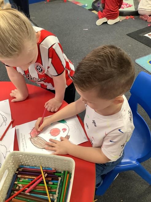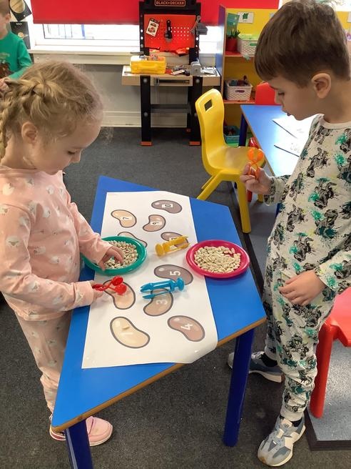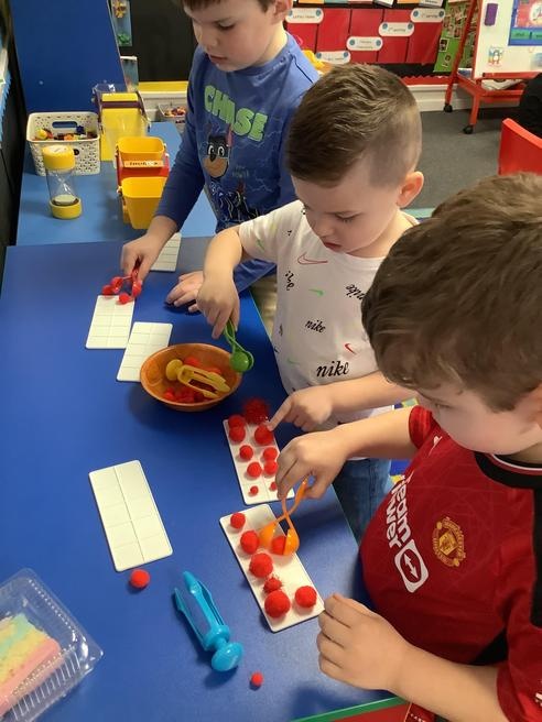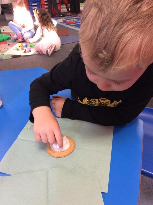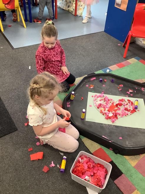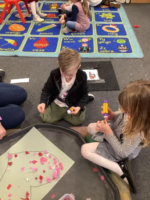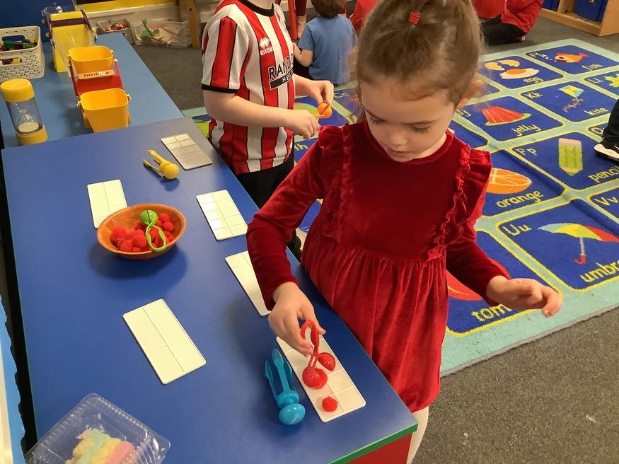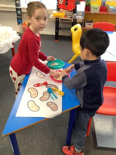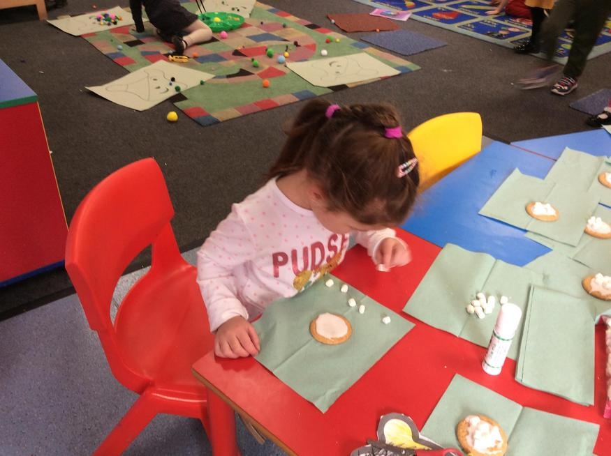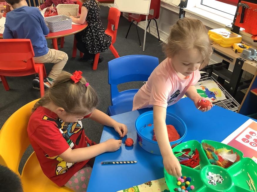 This Red Nose Day we had lots of different activities to choose from, we could count out red Pom Pom noses on to a 10s frame using tweezers, we made a huge paper tissue heart collage, we made some amazing red noses with play dough, we coloured in some faces with red noses on, used sticklebricks to make houses for people who had nowhere to live and iced some red nose biscuits. We also watched and talked about what it is to be kind. The children said being kind is saying “ kind words, helping each other, helping people, being kind to each other, sharing things, helping people to walk.” We also decided our class motto for today is “it’s nice to be nice”