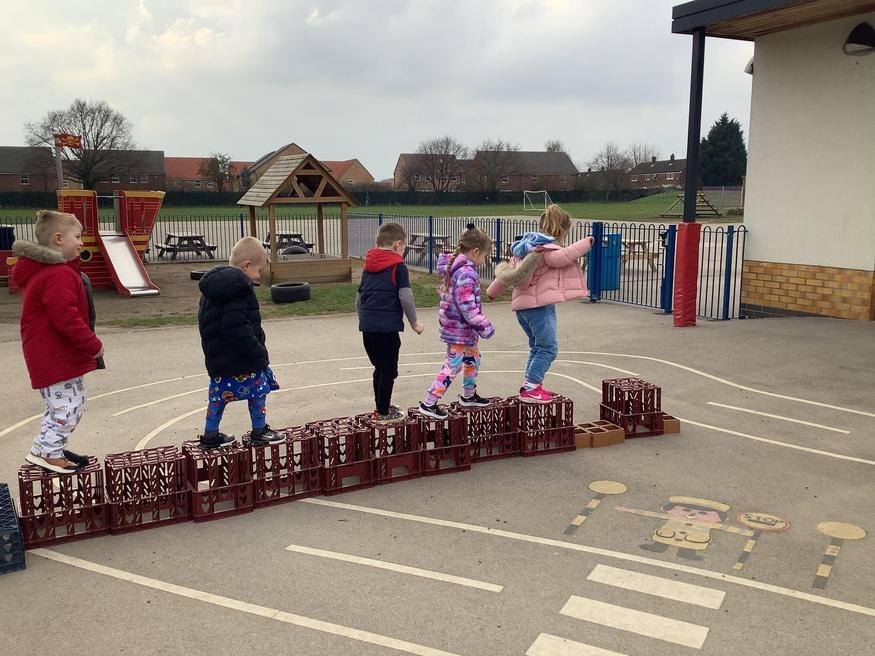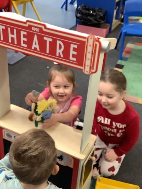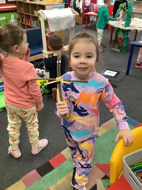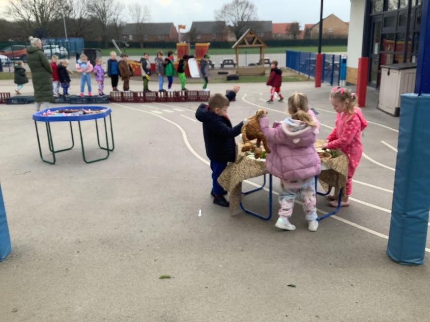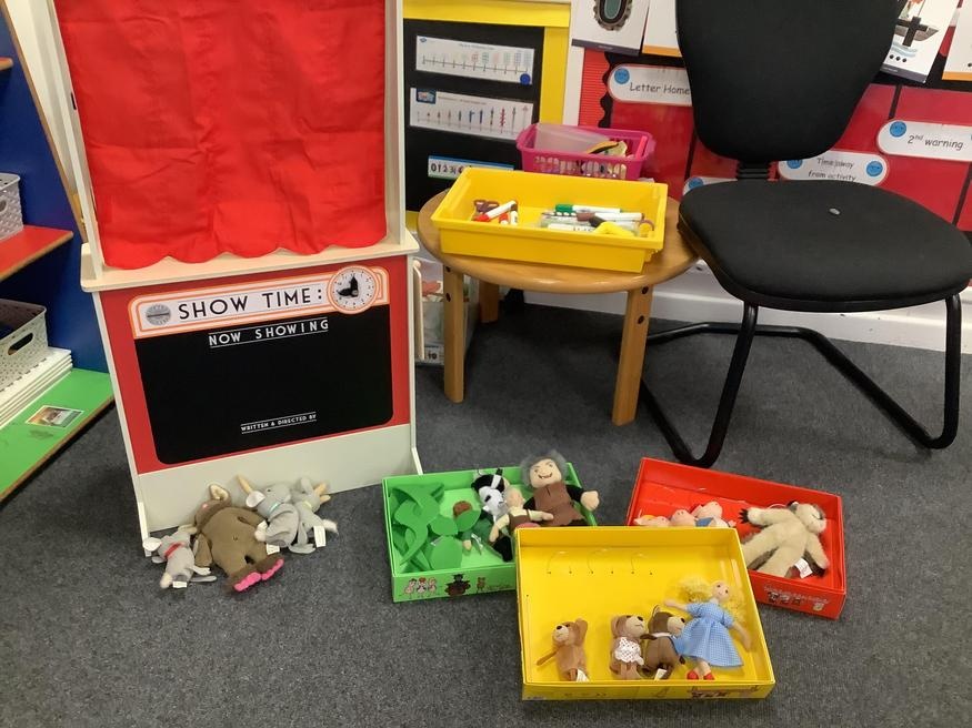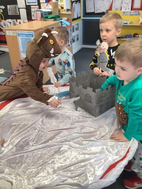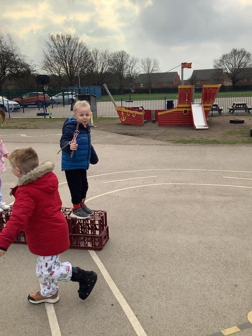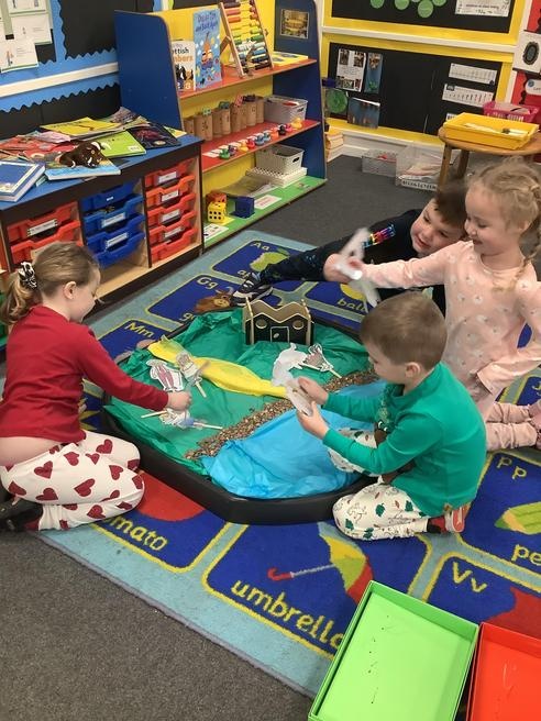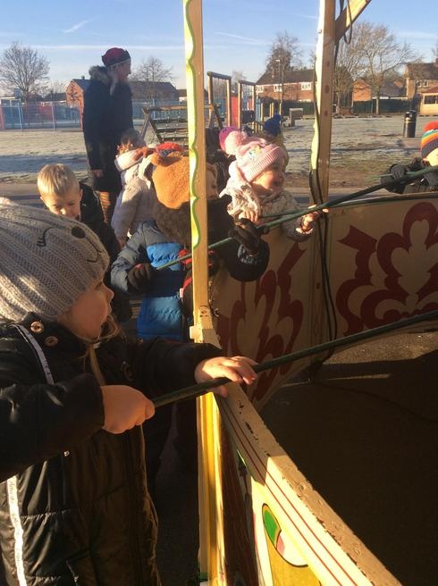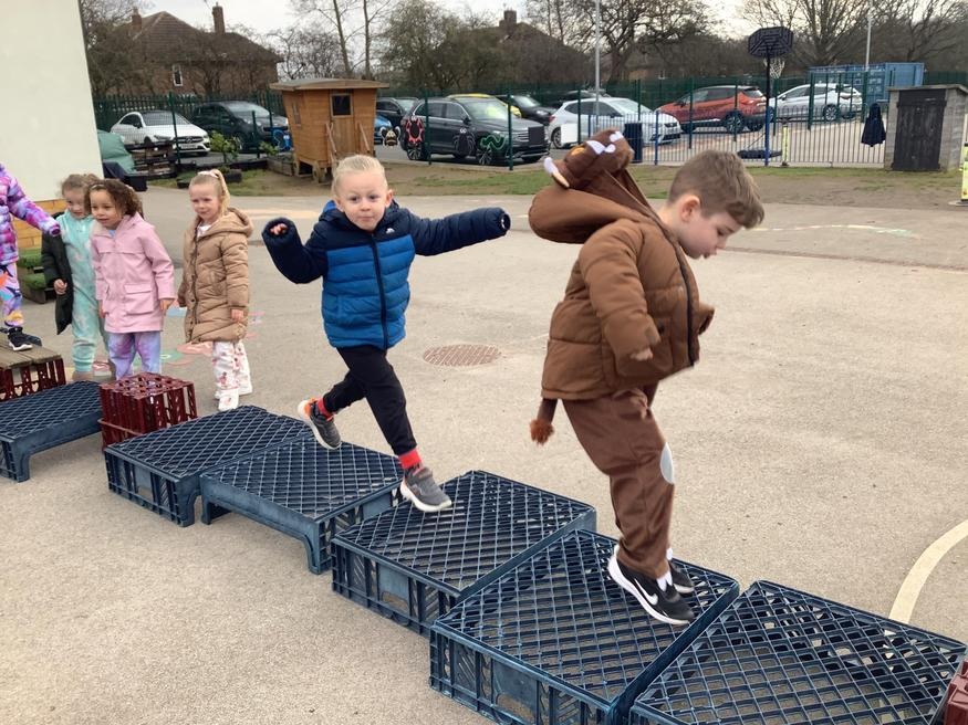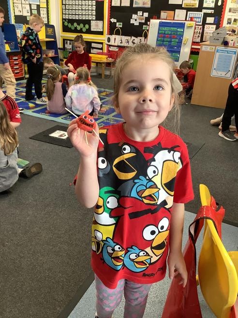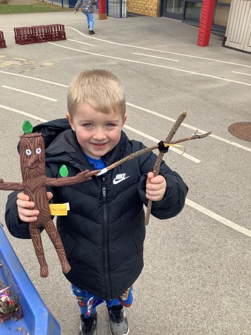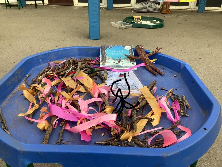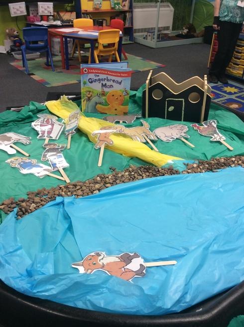 During the day we enjoyed lots of different activities, we used puppets to act out the stories, we made stick men, also we tried to make a boat to save the gingerbread man. We also had to find the characters in an I spy games . We used the crates to make a bridge for the Billy goats gruff to cross as well as lots of other activities. It was a very busy exciting day.