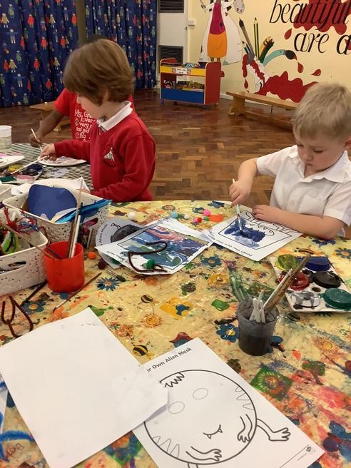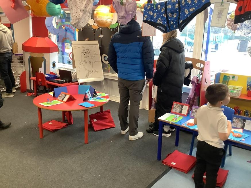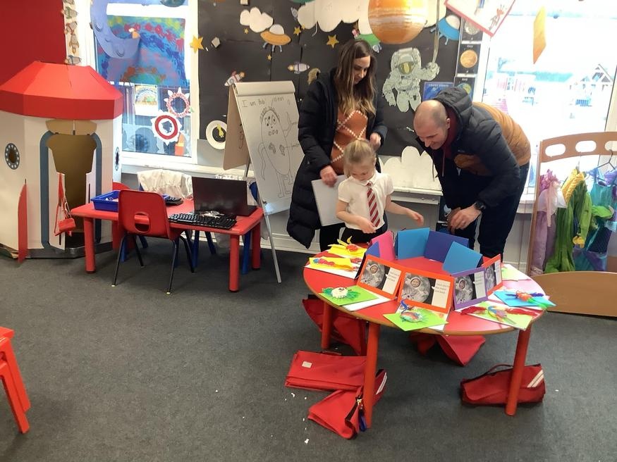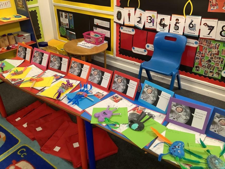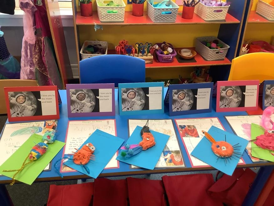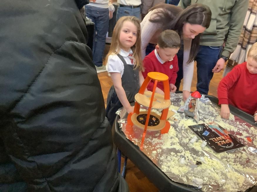 We had an amazing time at our Parent Space Afternoon, we showed our fabulous rockets and fantastic aliens. We also showed our grown ups lots of different activities. We had a rocket in some special moon dust ,we had words that were real and alien and we had to sort them into obb and Bob, we also made alien masks and we sorted out moon rocks with tweezers. We could also sit and enjoy a book . We had a really good afternoon and enjoyed showing our adults our brilliant work.