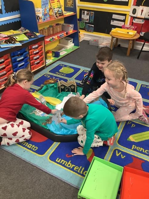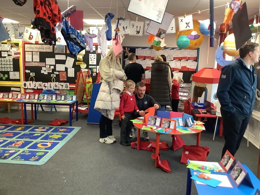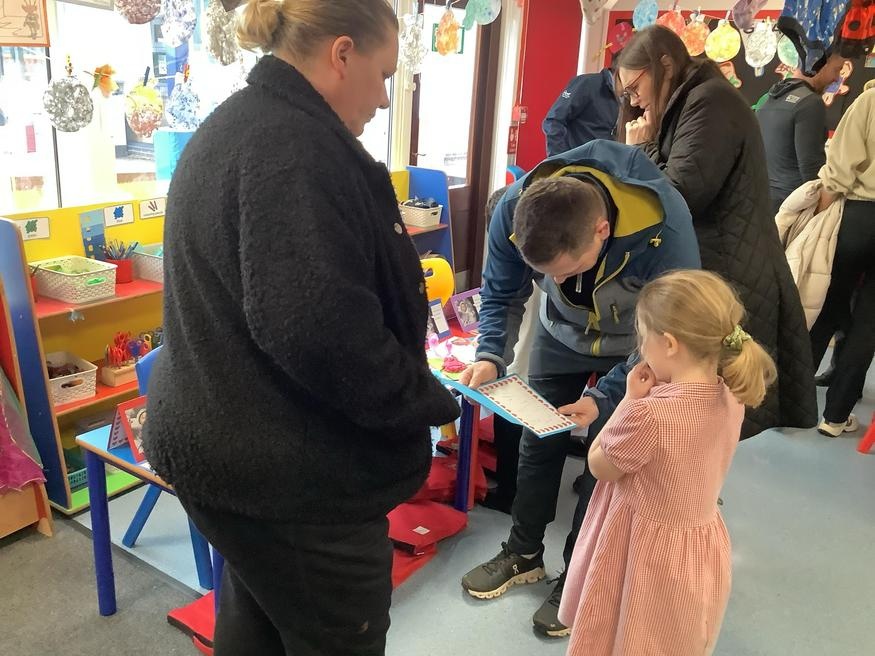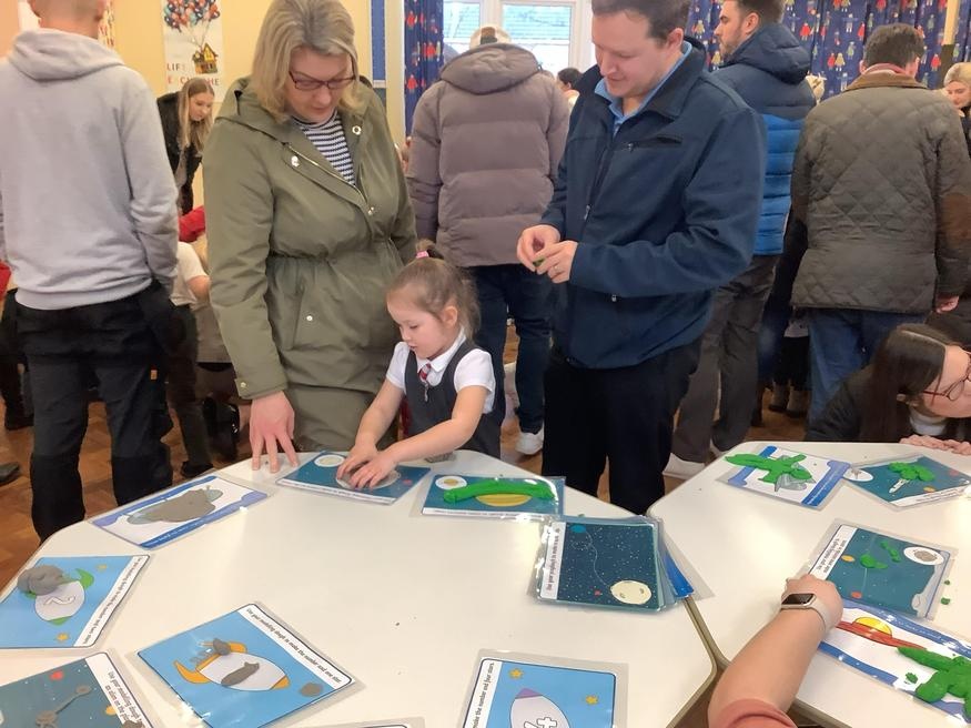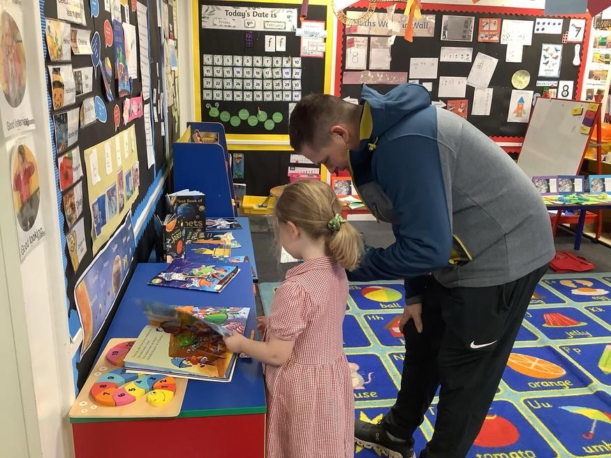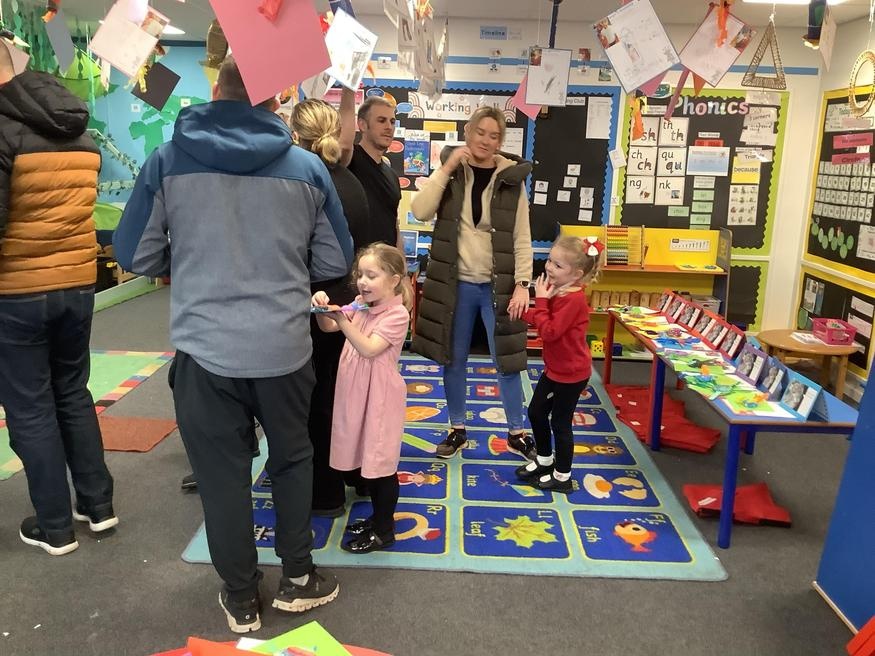 We had an amazing time at our Parent Space Afternoon, we showed our fabulous rockets and fantastic aliens. We also showed our grown ups lots of different activities. We had a rocket in some special moon dust ,we had words that were real and alien and we had to sort them into obb and Bob, we also made alien masks and we sorted out moon rocks with tweezers. We could also sit and enjoy a book . We had a really good afternoon and enjoyed showing our adults our brilliant work.