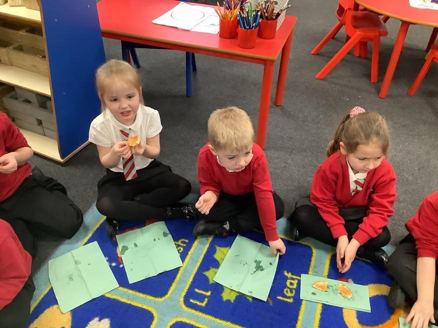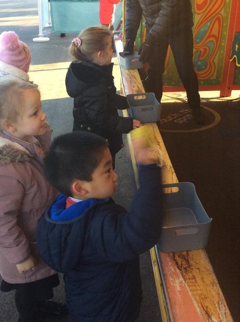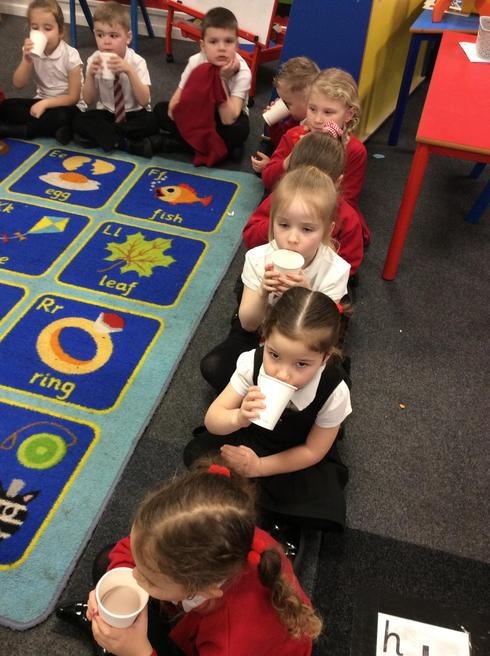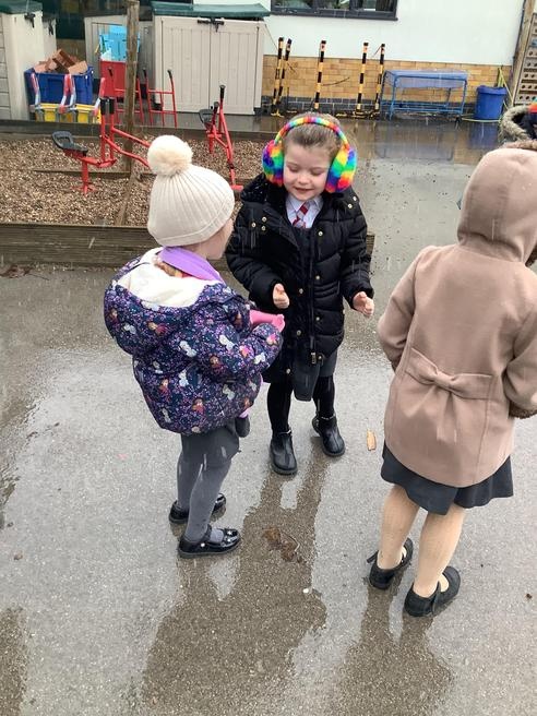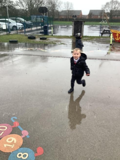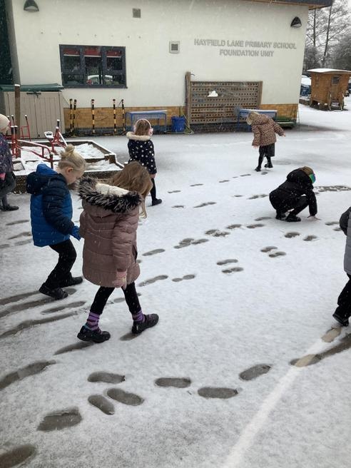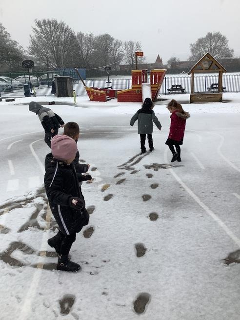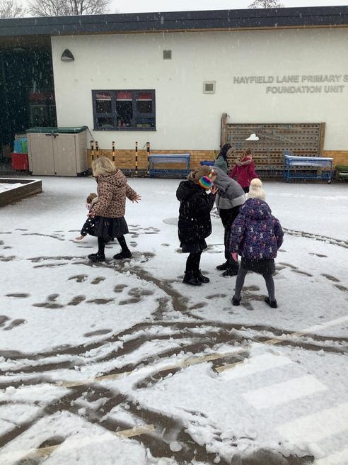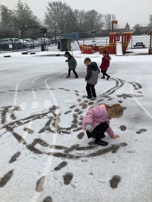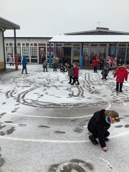 We have been keen weather watchers today as the weather changed from sleet in the morning to snow, we experienced both. We tried to catch snowflakes with our hands and on our tongues. We even threw some snowballs at Mrs Cross and Mrs Abson. We enjoyed the show very much and we are hoping for some more snow so we can build some snowmen.