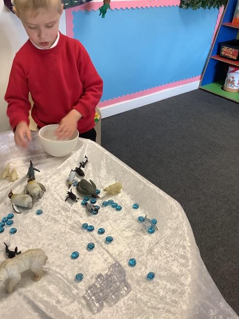 We have made boats in construction, wrote about polar bears and penguins, explored our arctic small world tray, booked holidays in the travel agents and got crafty in the creative area!