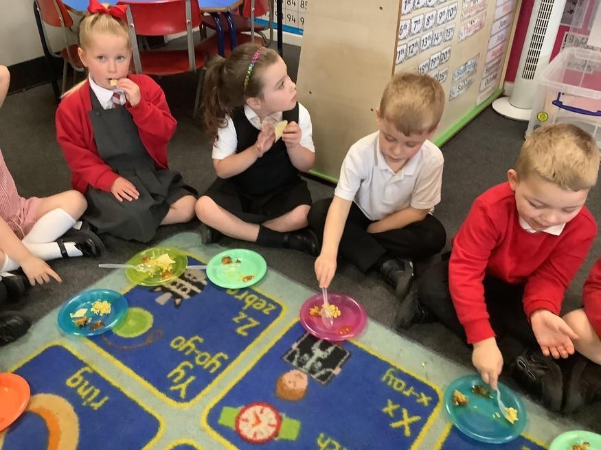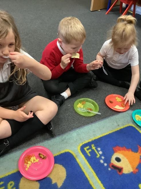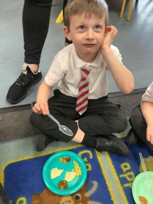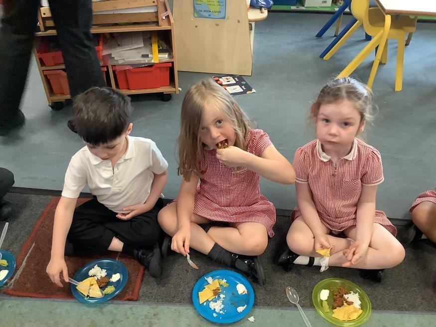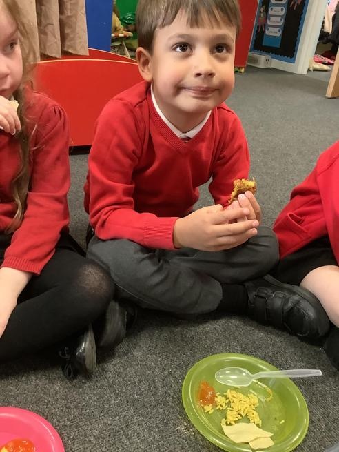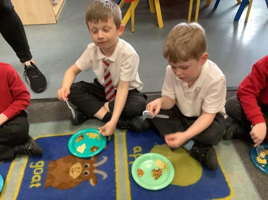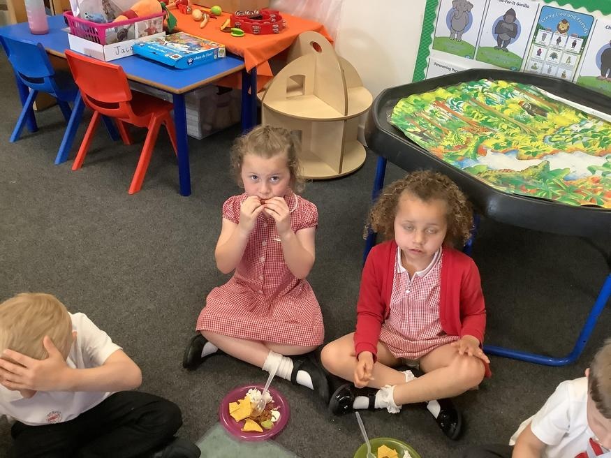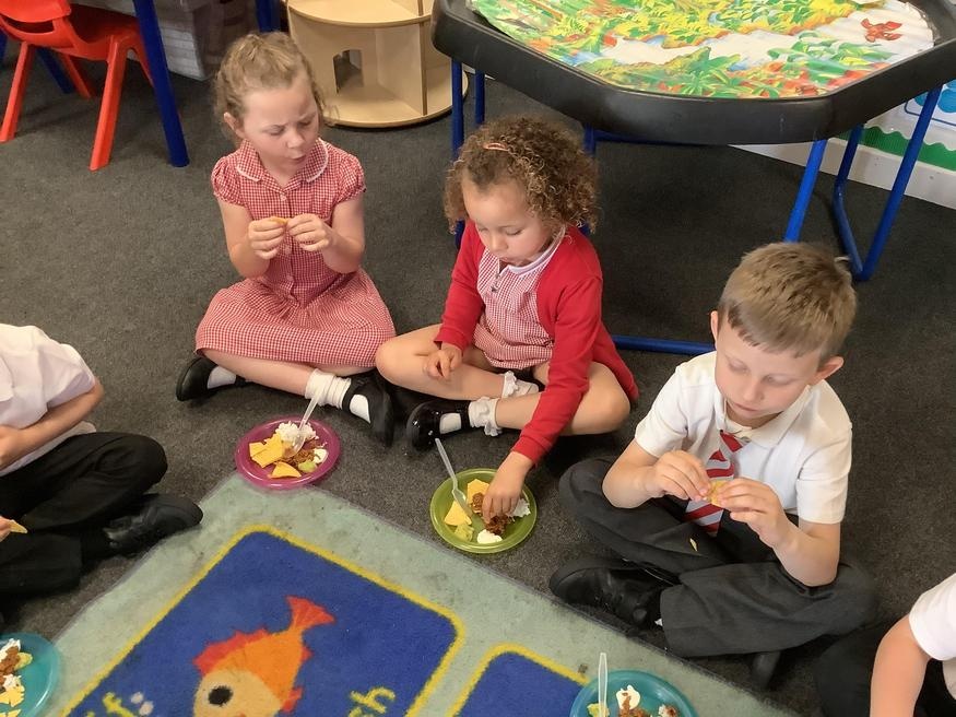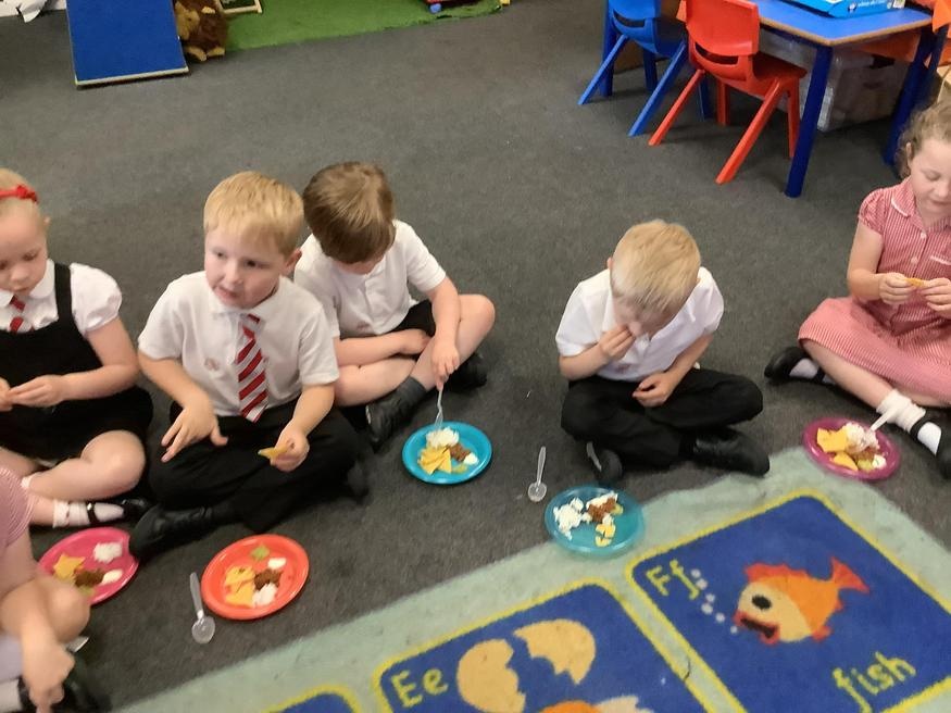We looked at the different foods you might see, and found out if any of us have experienced them before. We looked at the food we had today - Popadoms, Onion Bahji’s, Pilau Rice and Mango Chutney.