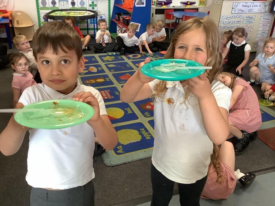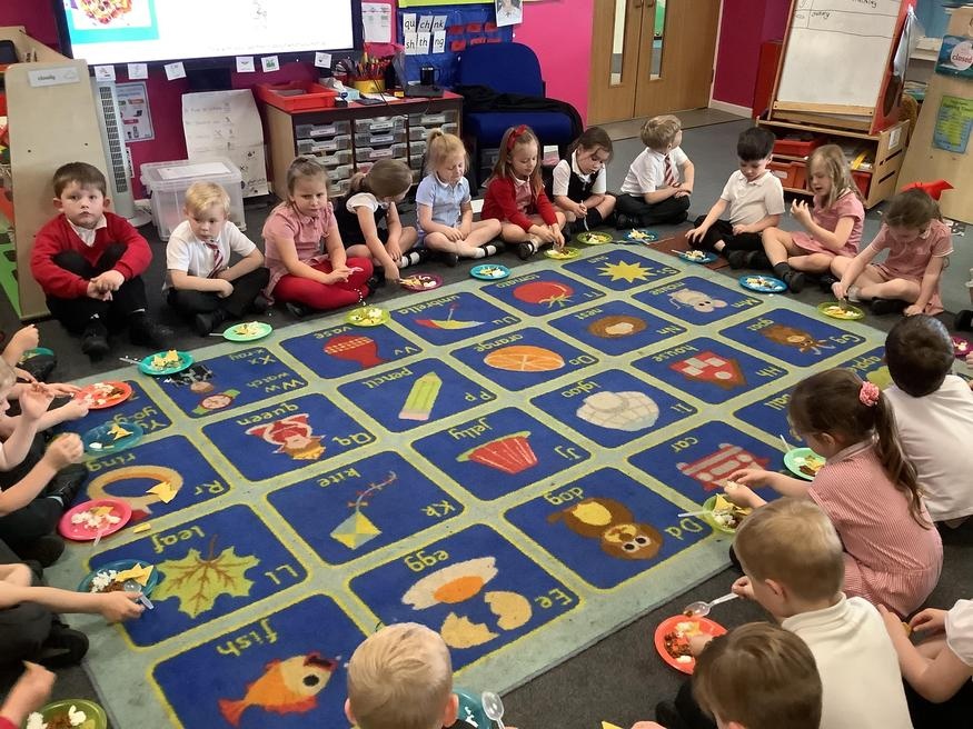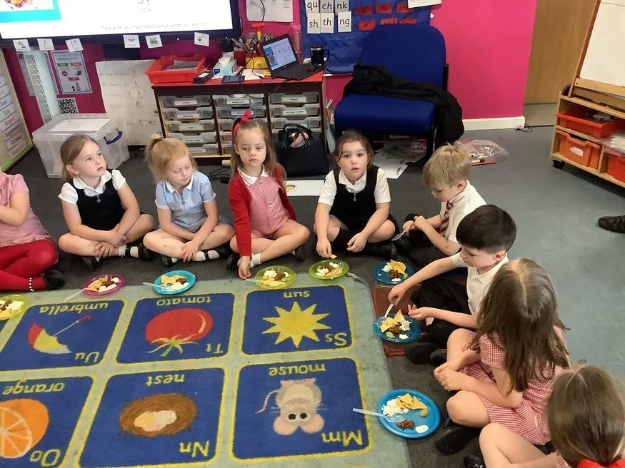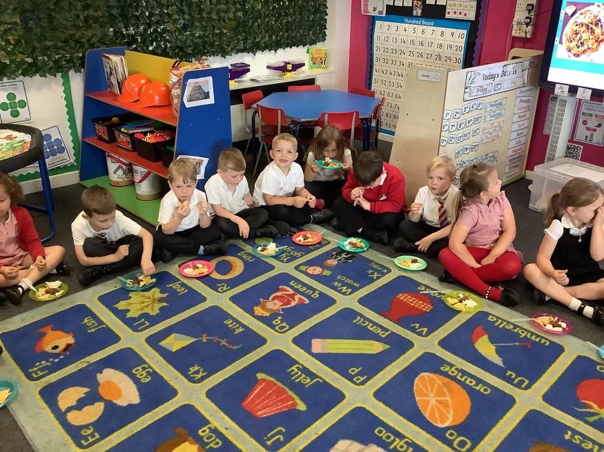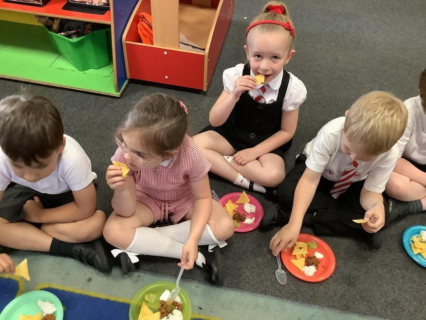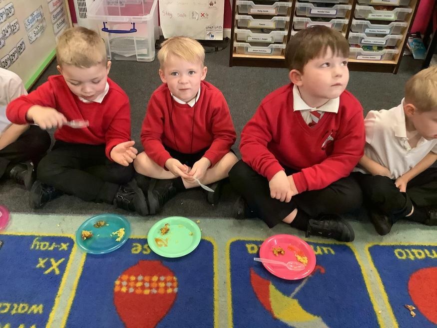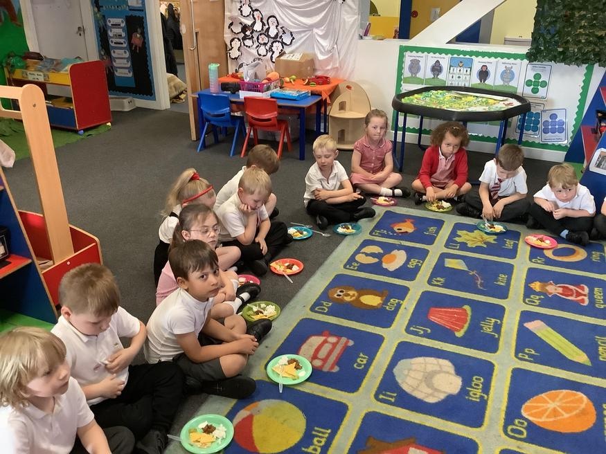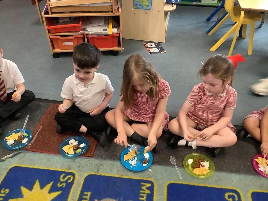 We looked at the different foods you might see, and found out if any of us have experienced them before. We looked at the food we had today - Popadoms, Onion Bahji’s, Pilau Rice and Mango Chutney.