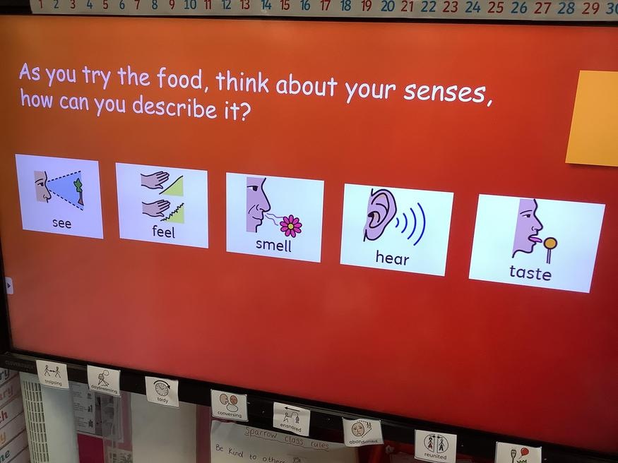 we were really good at remembering our senses of look, feel, hear, smell and then taste. When we got our foods we used all our other senses before tasting and it helped us to appreciate the food!