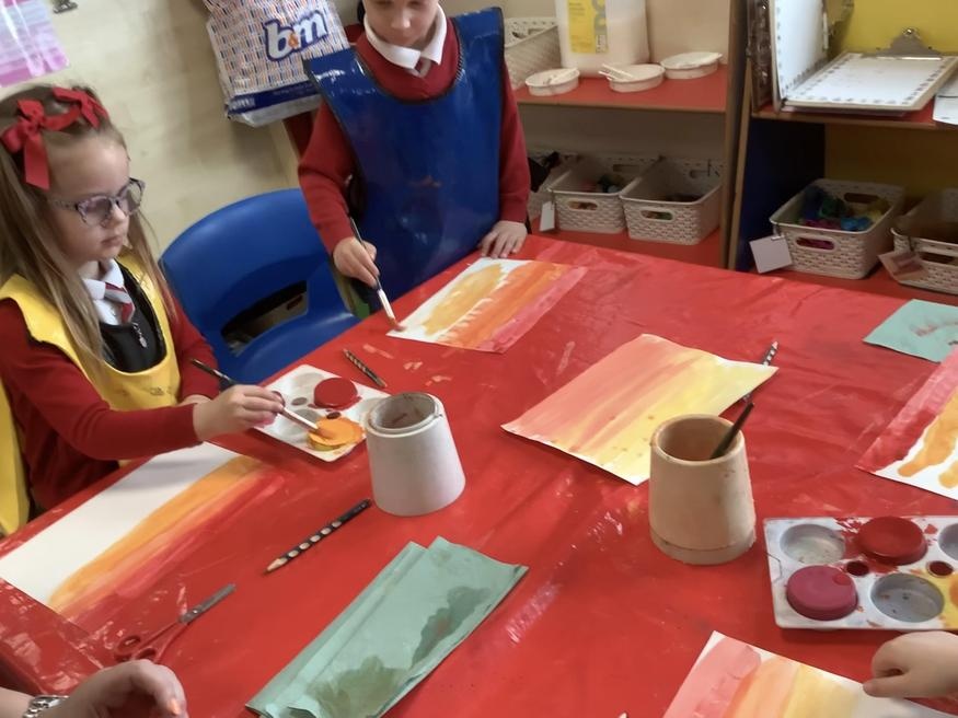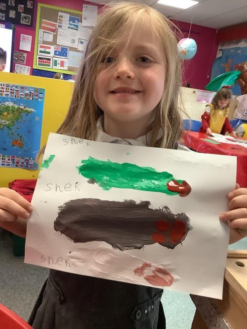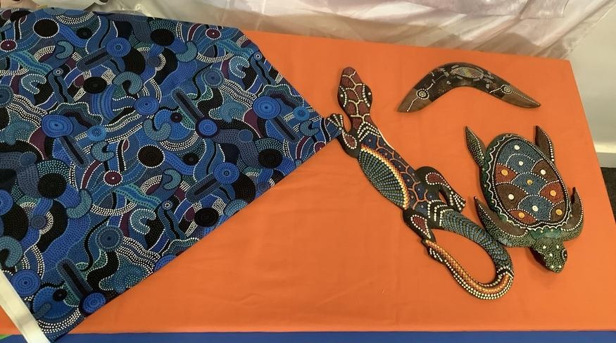When thinking about Australia, we looked at aboriginal art and dot paintings, and looked at these on some artefacts from the museum.