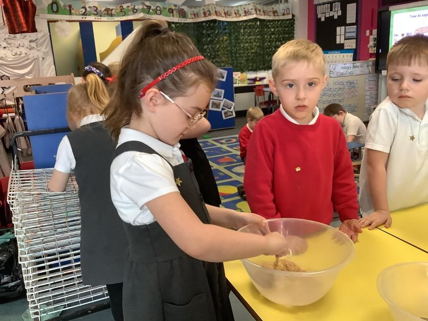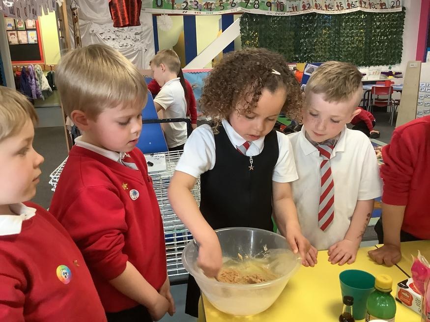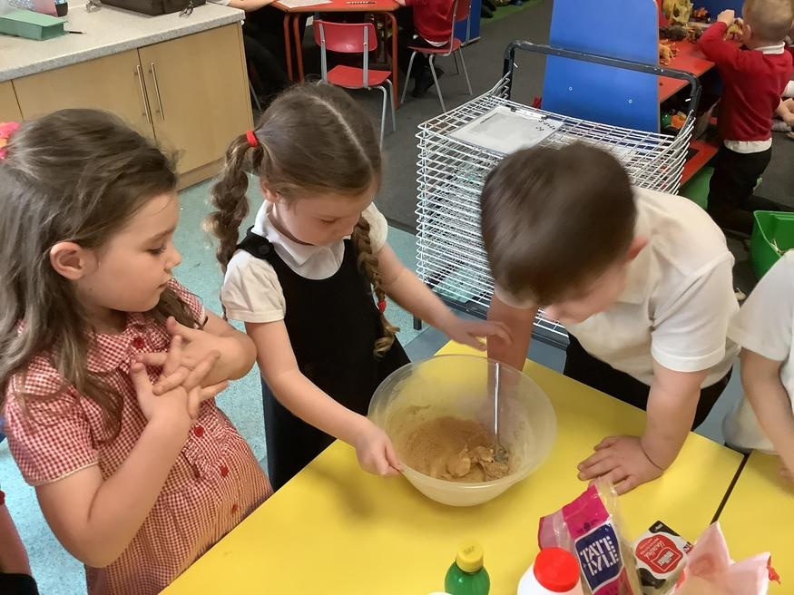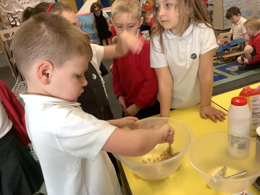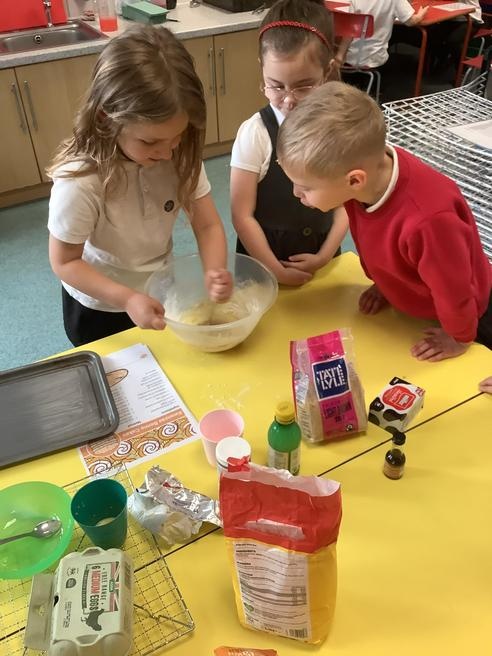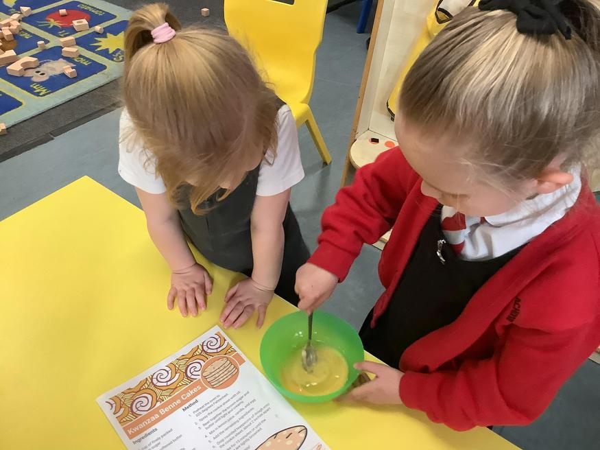 On Friday we followed a recipe to make “kwanzee benne cakes”. We worked together to find out what we needed and use the right amounts and mix them together. We all agreed they were yummy!