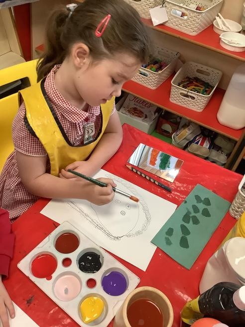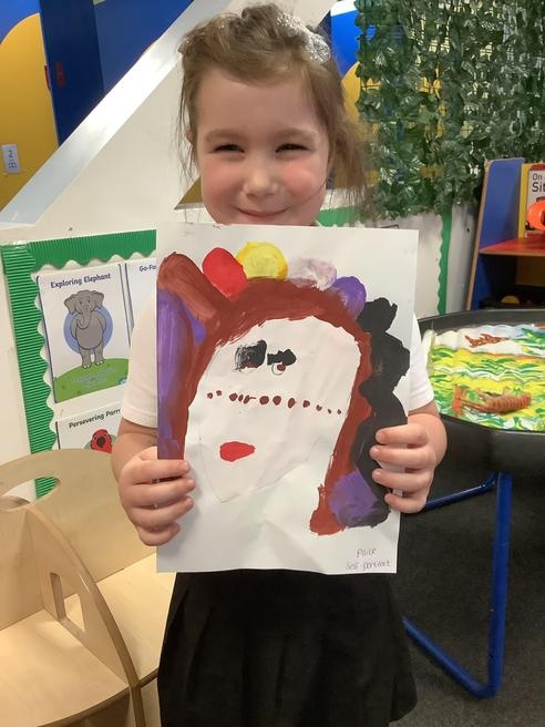 We looked at the artist Frida Khalo from Mexico, and learnt about her story and paintings. We made a step by step guide to create our own self portraits, and then painted these after looking in mirrors to check and draw our features first. We also added things we like/bright colours to the background, just like Frida Khalo did!